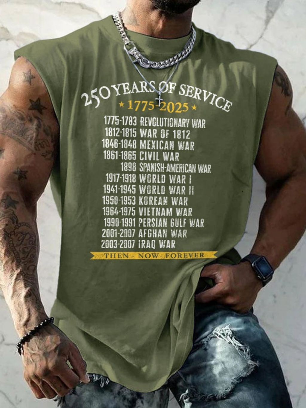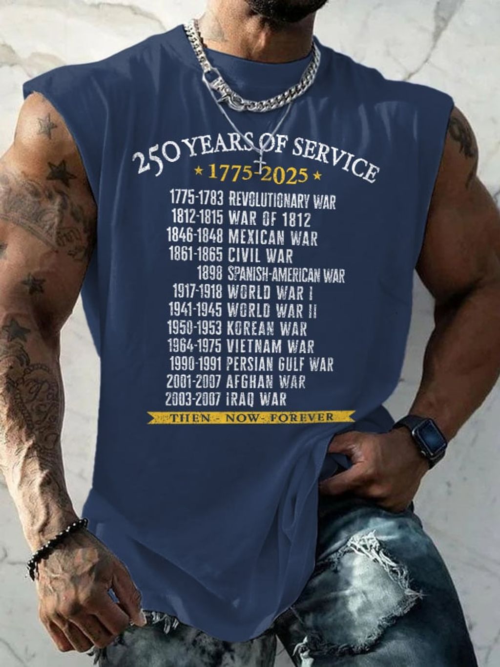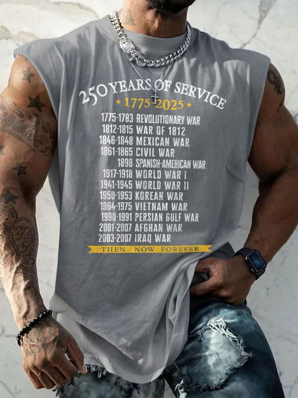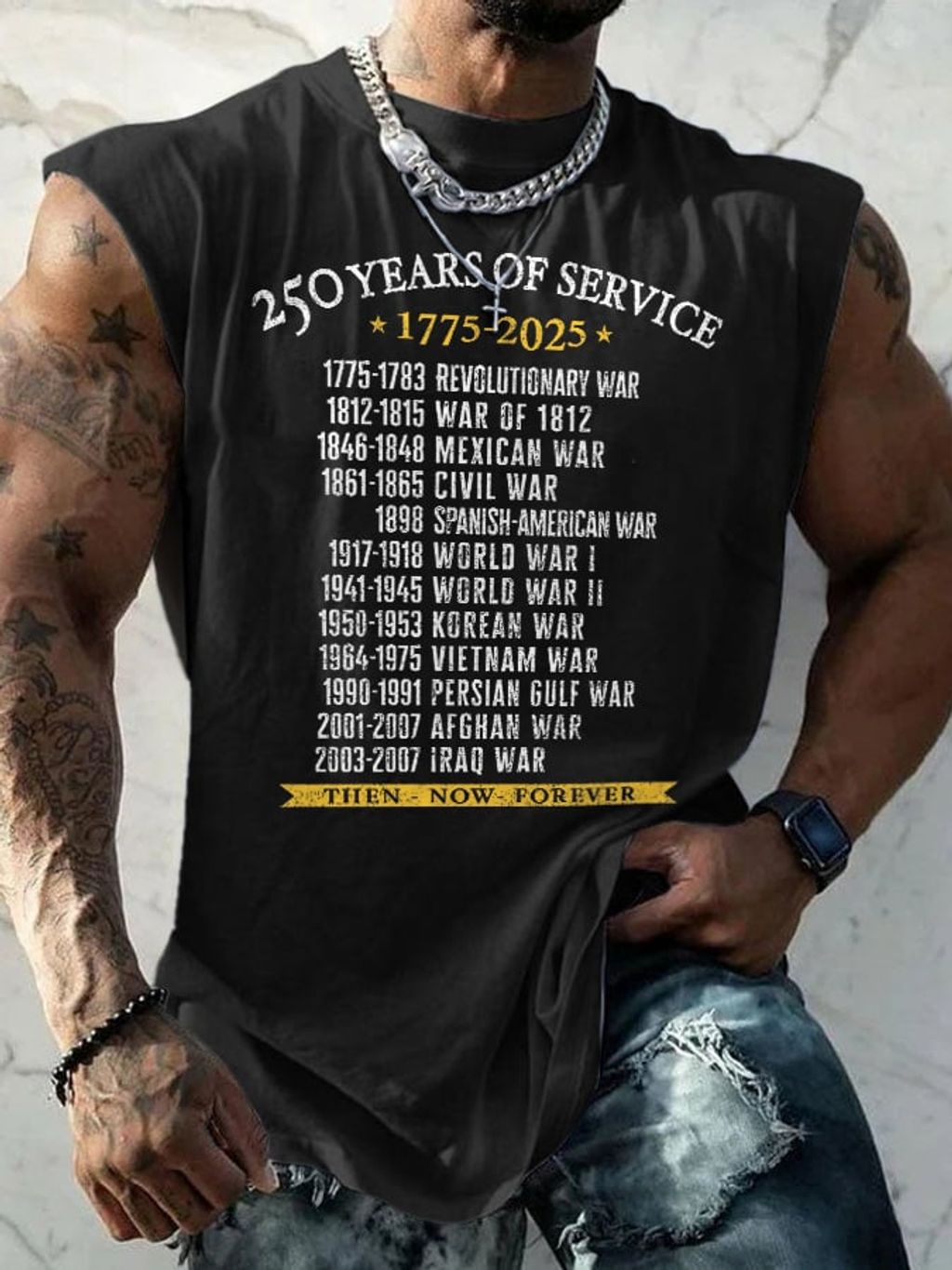 Retro Men's United States Army 250 Years Of Service 1775-2025 Then - Now - Forever Print Tops Tank