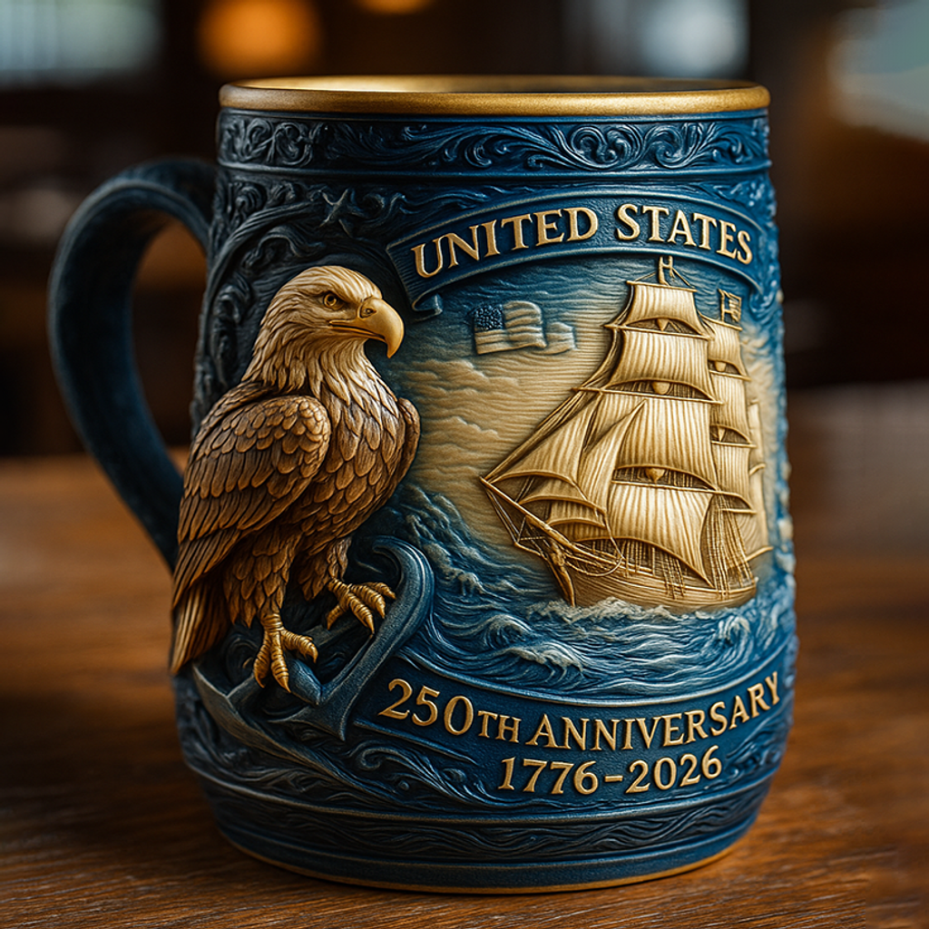 🦅 Celebrate America’s Spirit – This commemorative mug captures the strength and pride of the United States, featuring a majestic eagle and historic ship in intricate 3D relief. Crafted to honor 250 years of freedom (1776–2026), it is both a functional mug and a collector’s treasure.