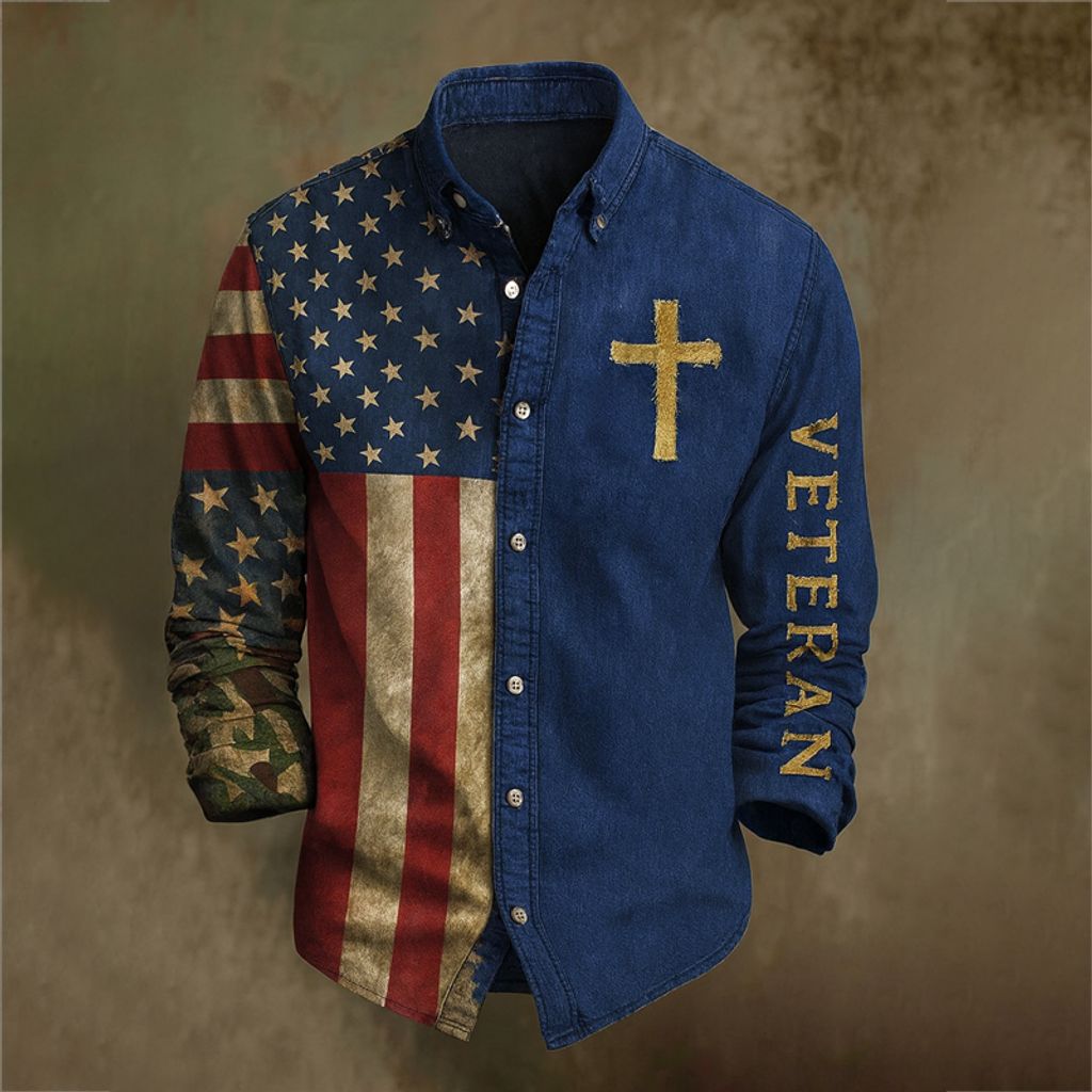 US Flag Faith Retro Art Print Long Sleeve Shirt