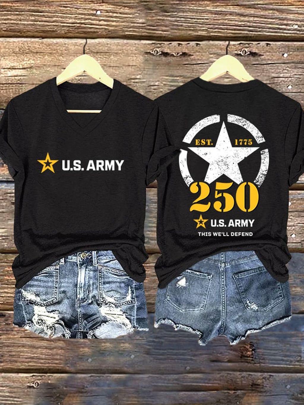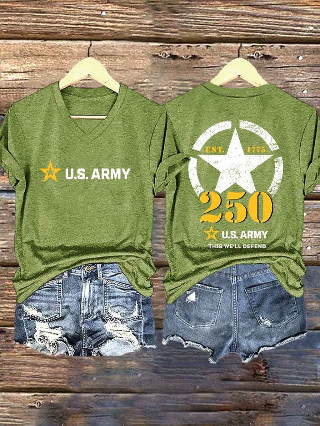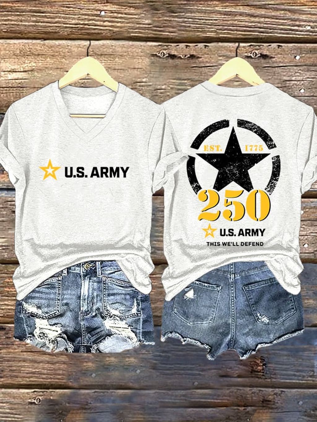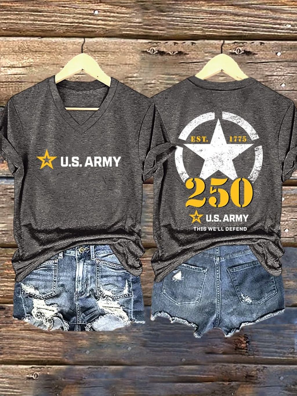 V-Neck Retro U.S. Army 250th Anniversary This We'll Defend Est.1775 Print T-Shirt