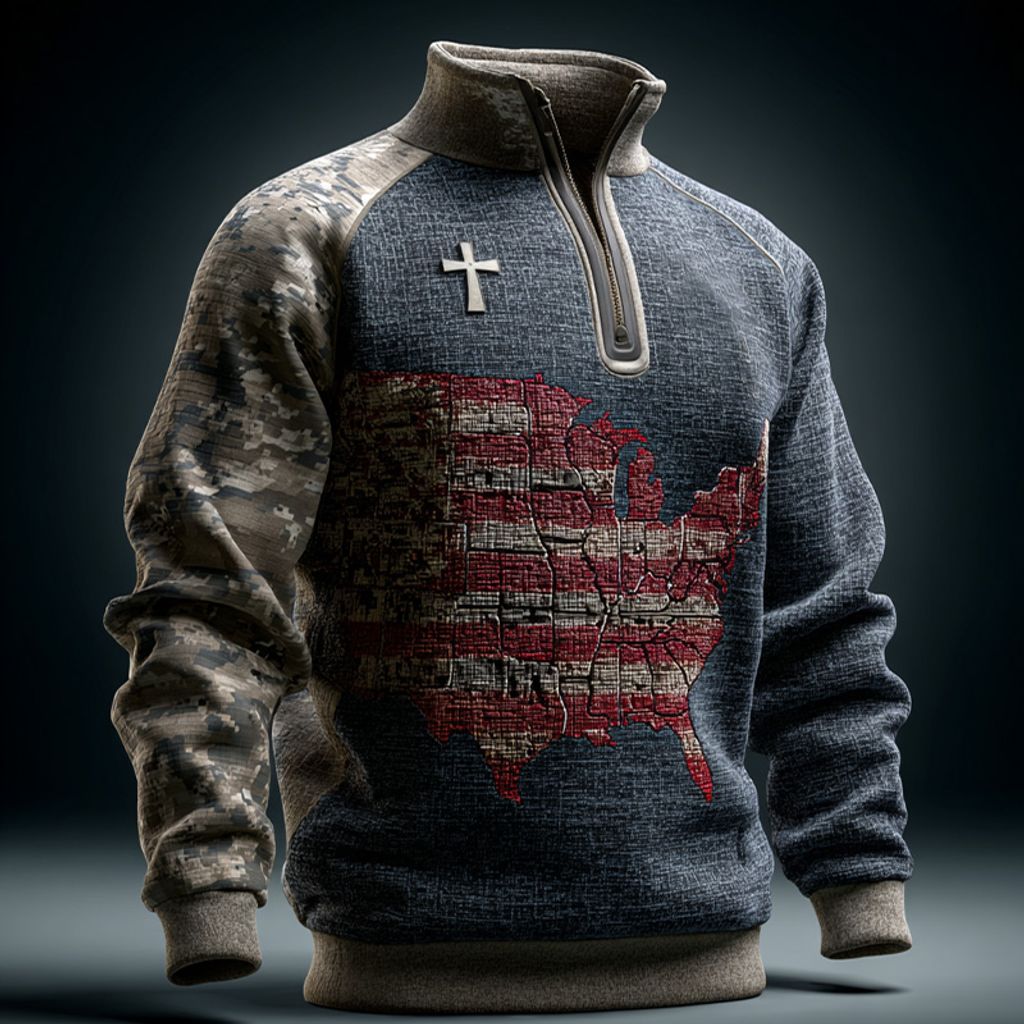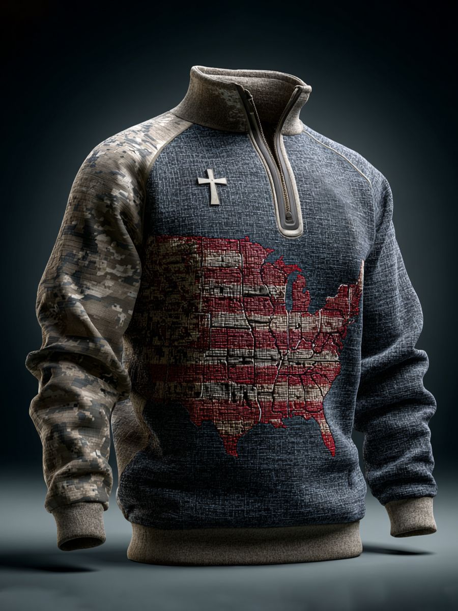 Vintage American Flag Faith Art Print Casual Zip-Up Sweatshirt
