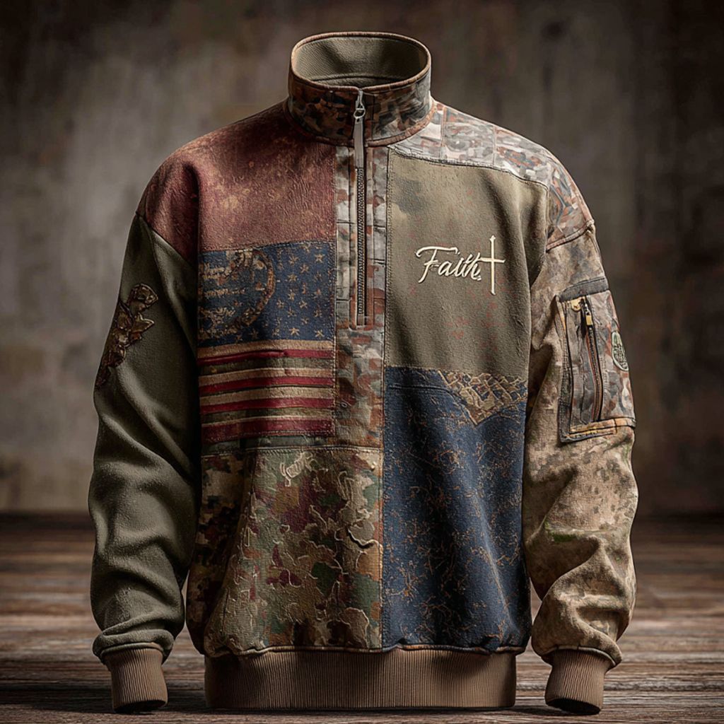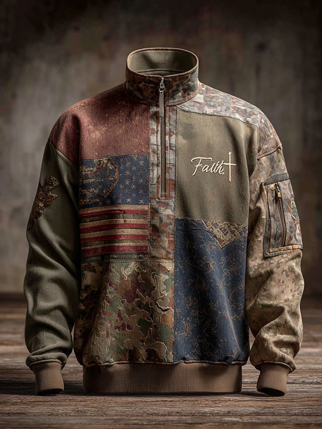 Vintage American Flag Faith Art Print Casual Zip-Up Sweatshirt