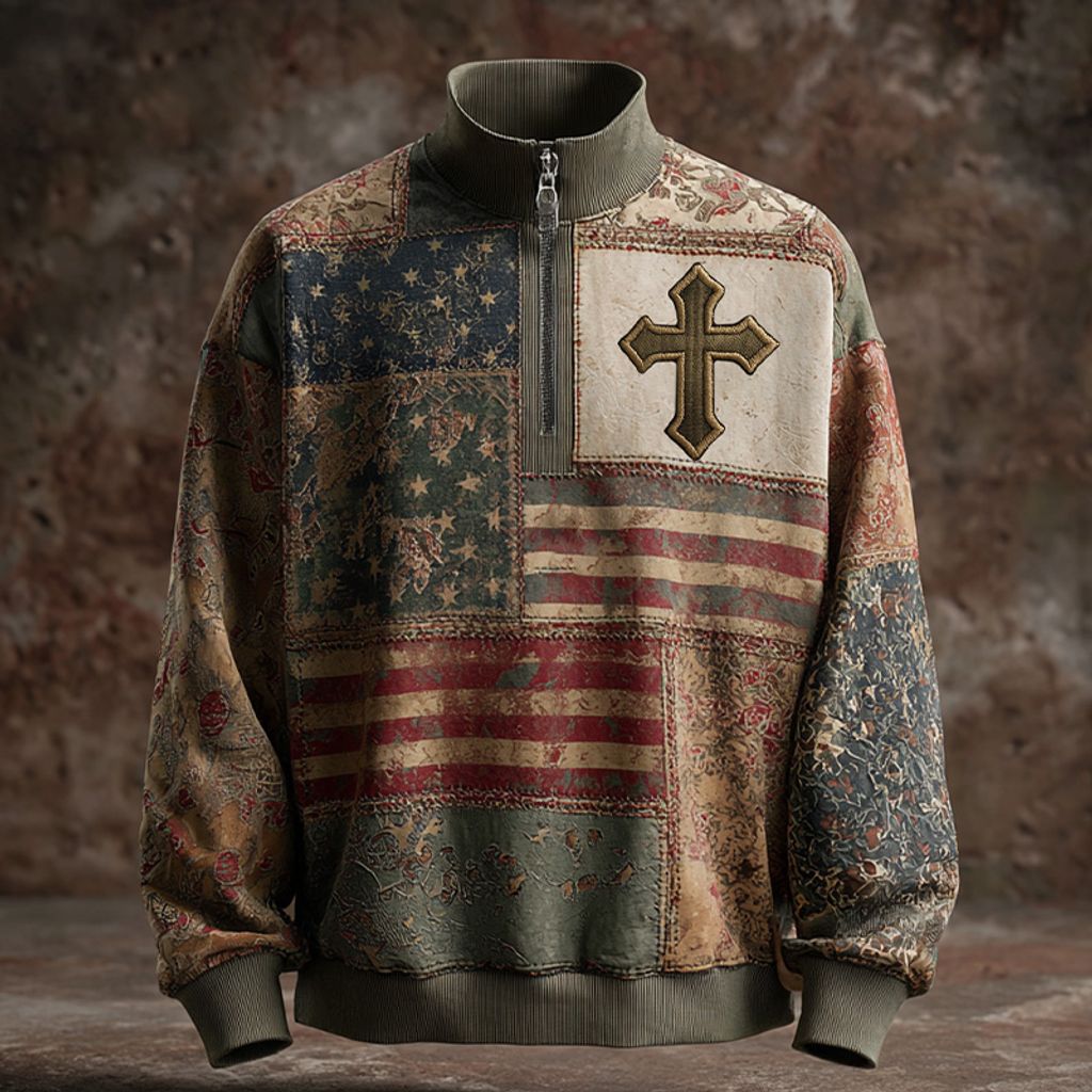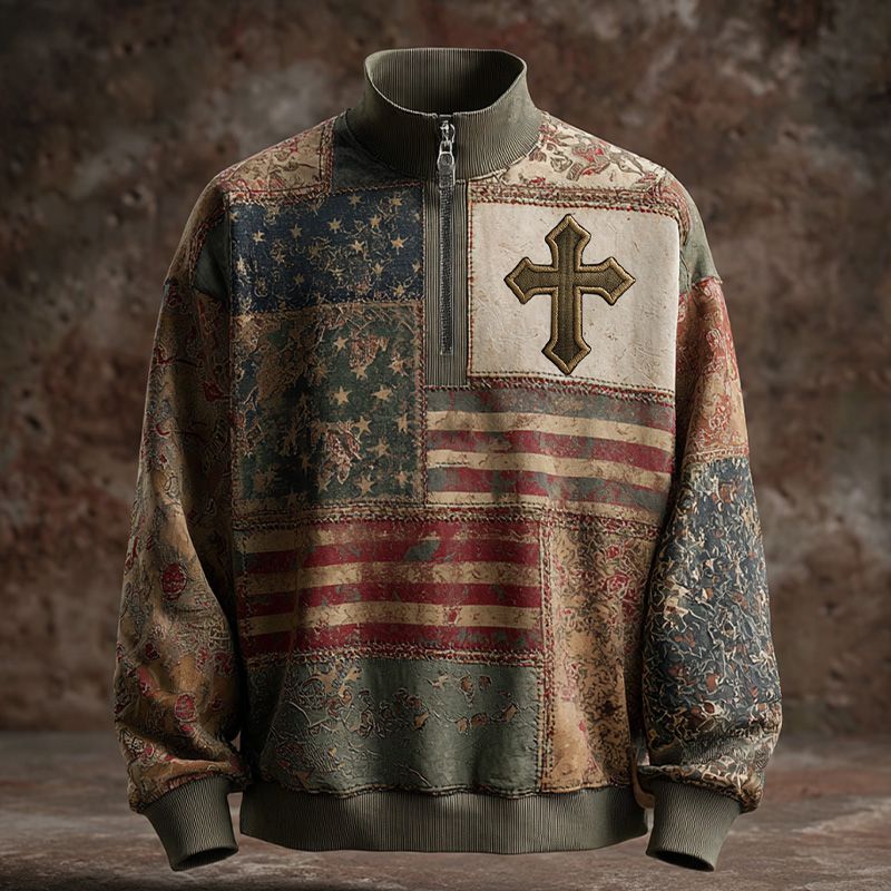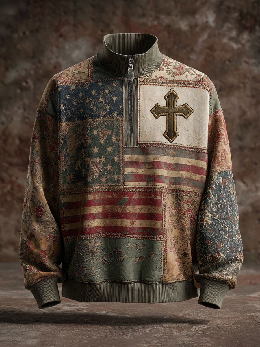Vintage American Flag Faith Art Print Casual Zip-Up Sweatshirt