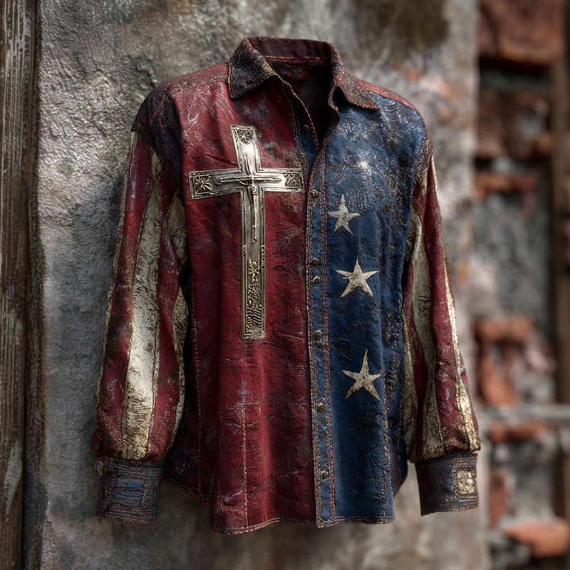 Vintage American Flag Faith Patriot Art Print Casual Shirt