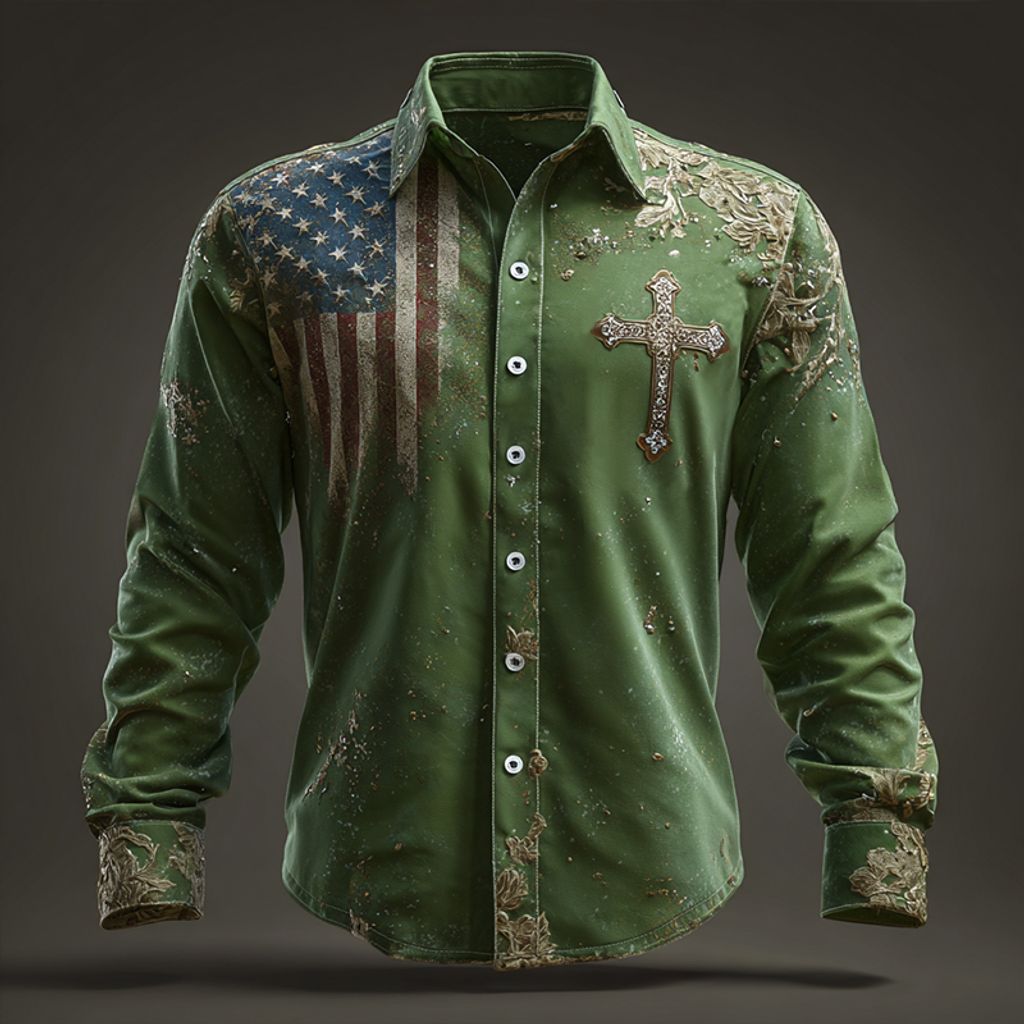 Vintage American Flag Faith Patriot Art Print Casual Shirt