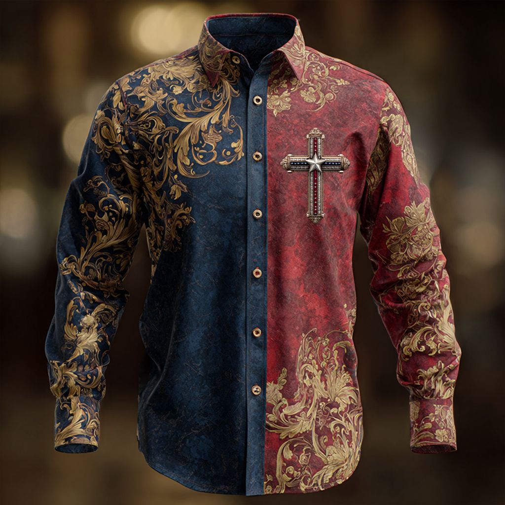 Vintage American Flag Faith Patriot Art Print Casual Shirt