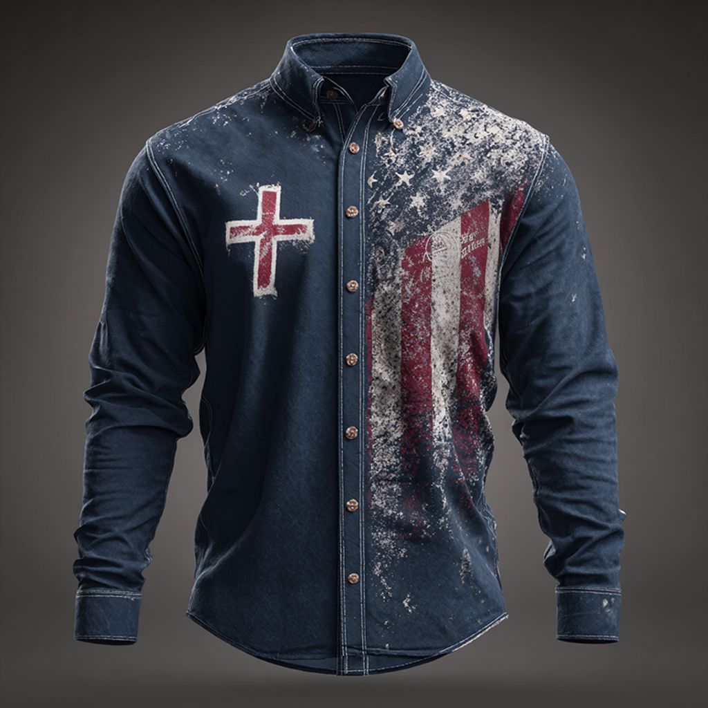 Vintage American Flag Faith Patriot Art Print Casual Shirt