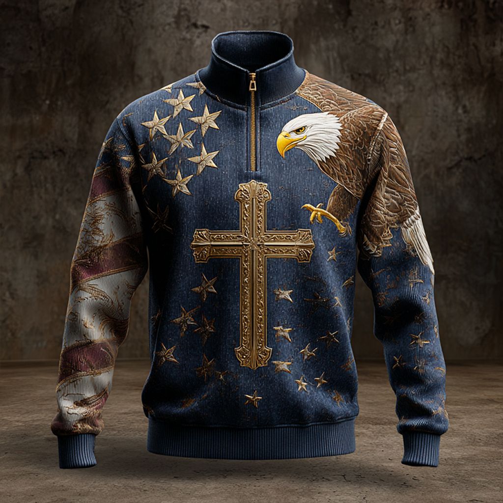 Vintage American Flag Faith Patriot Art Print Casual Zip-Up Sweatshirt