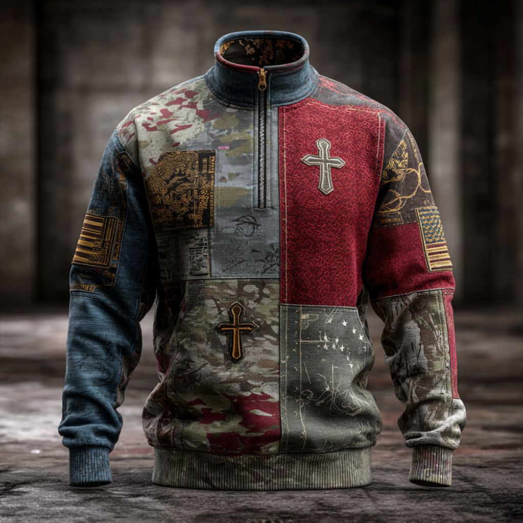 Vintage American Flag Faith Patriot Art Print Casual Zip-Up Sweatshirt