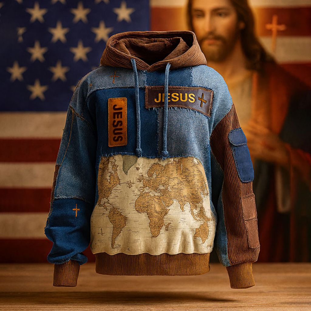 Vintage Patriotic Faith Art Print Casual Hoodie