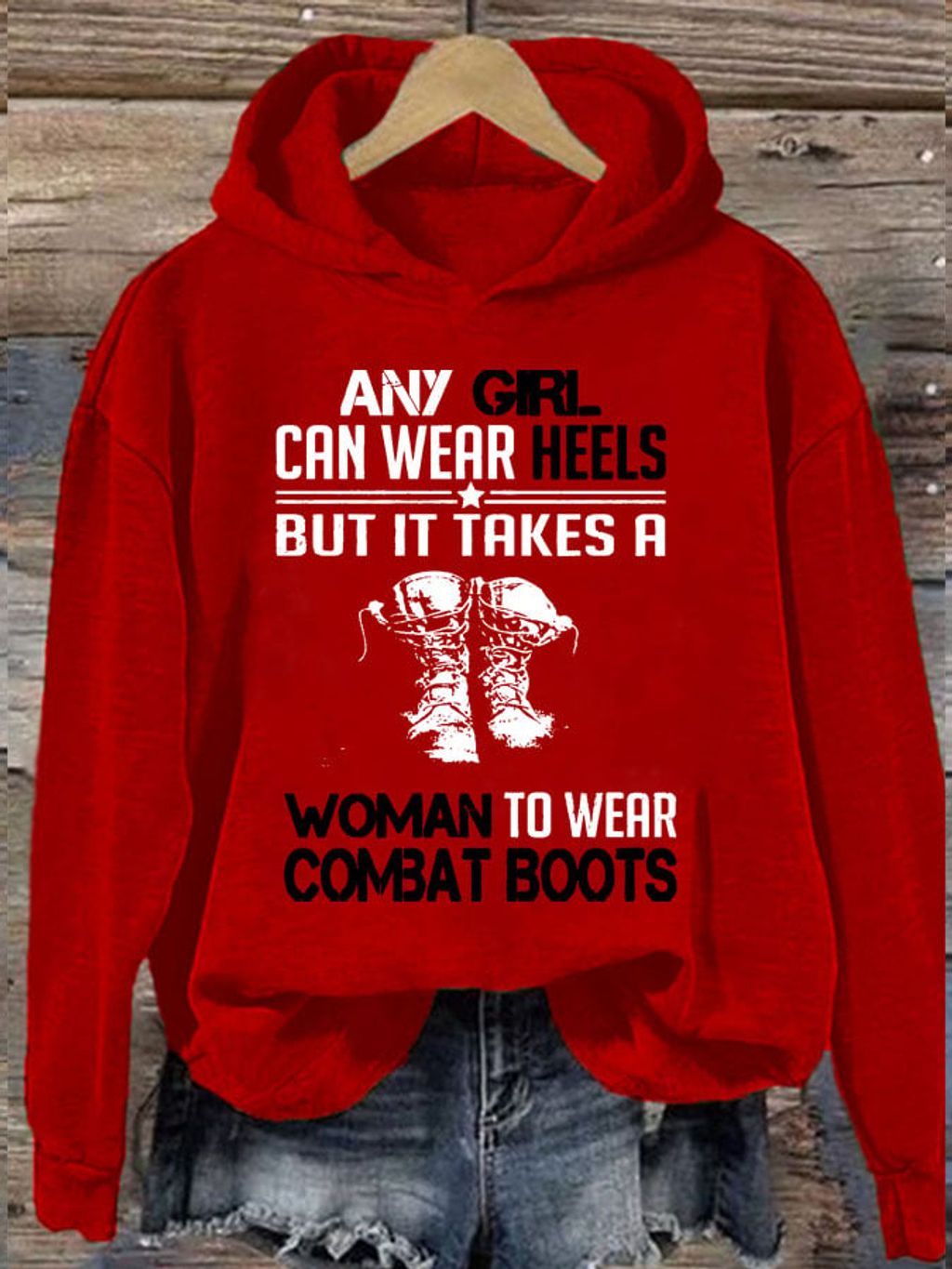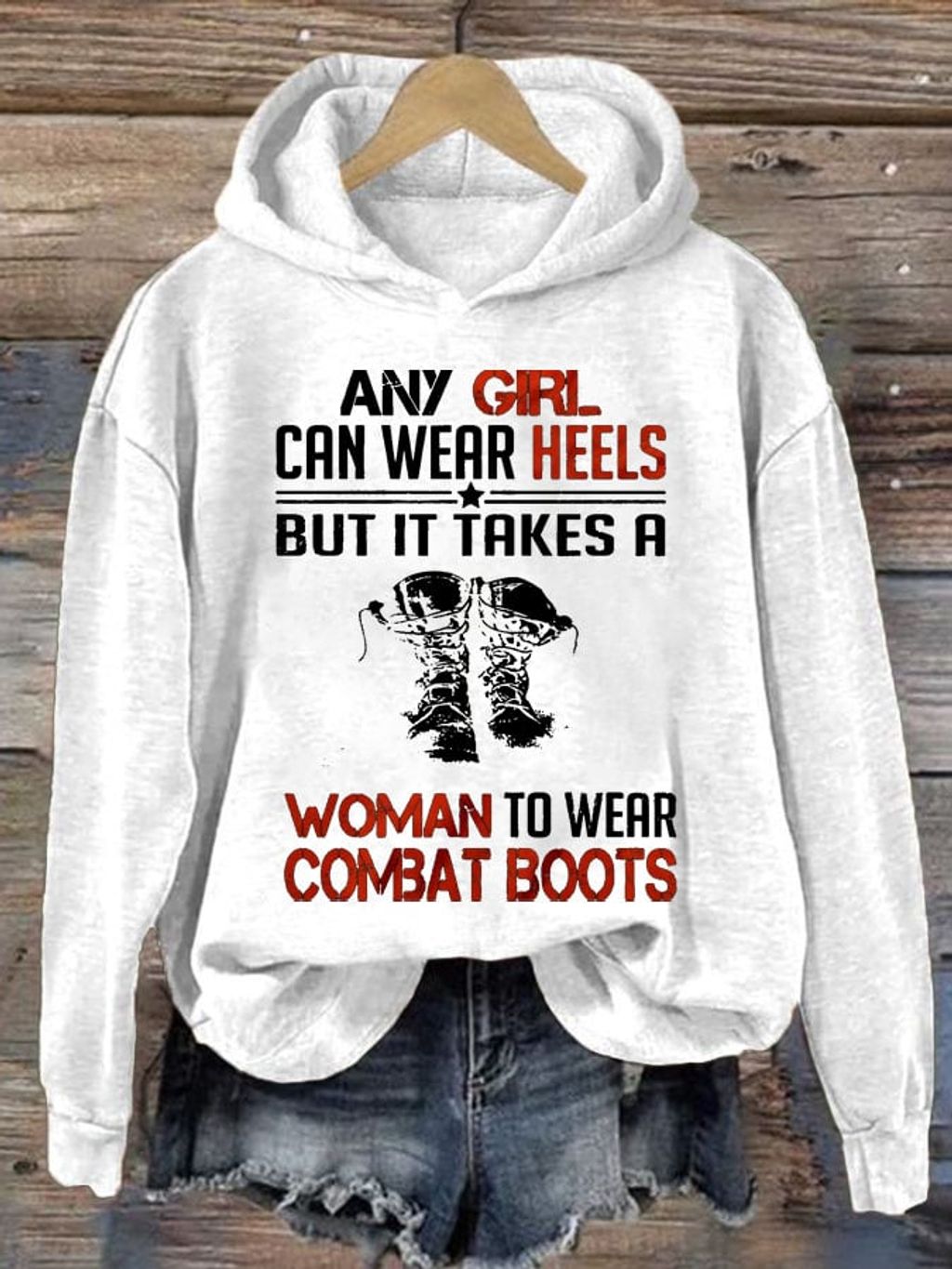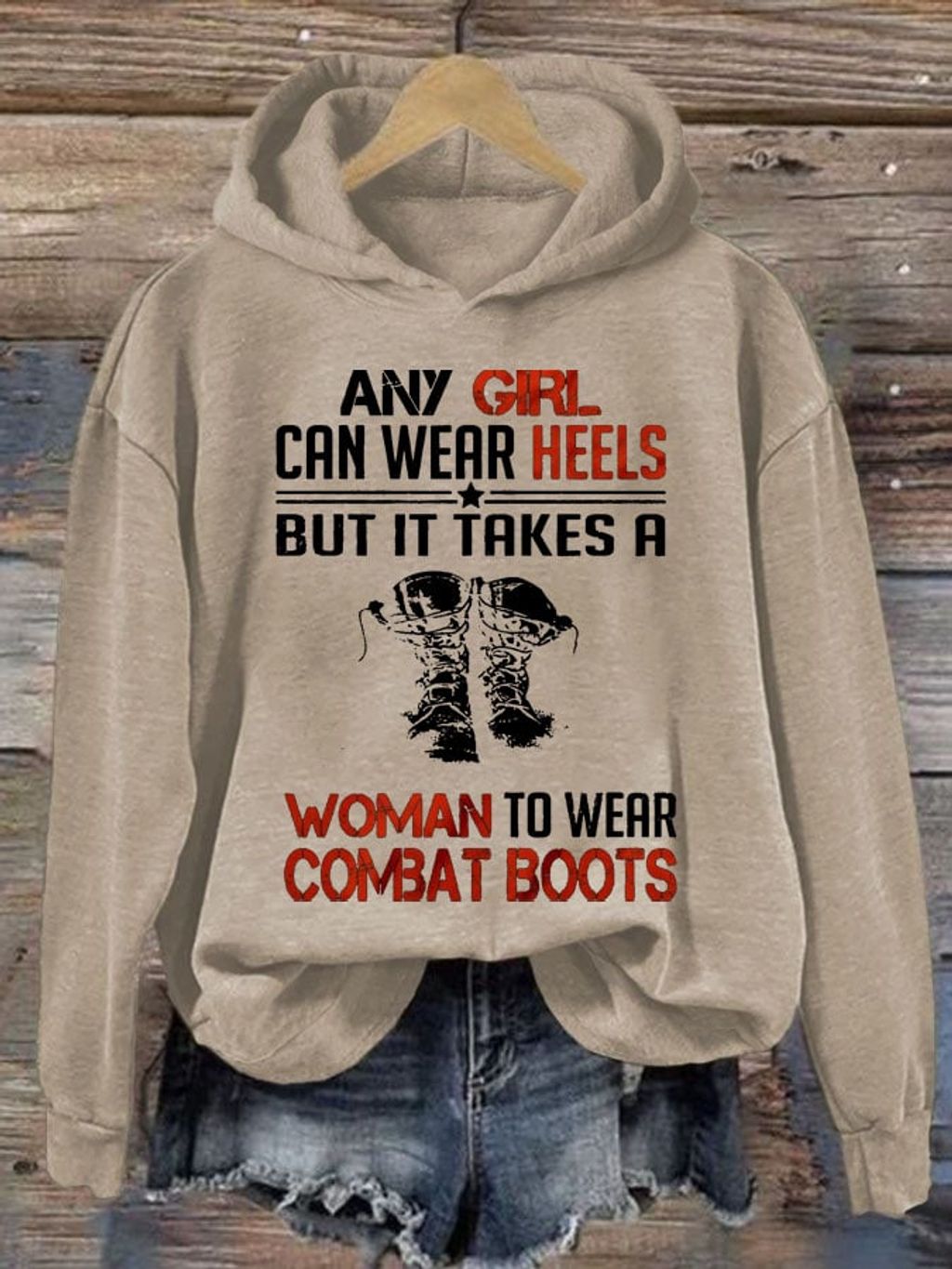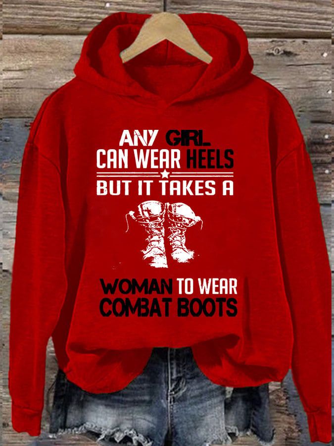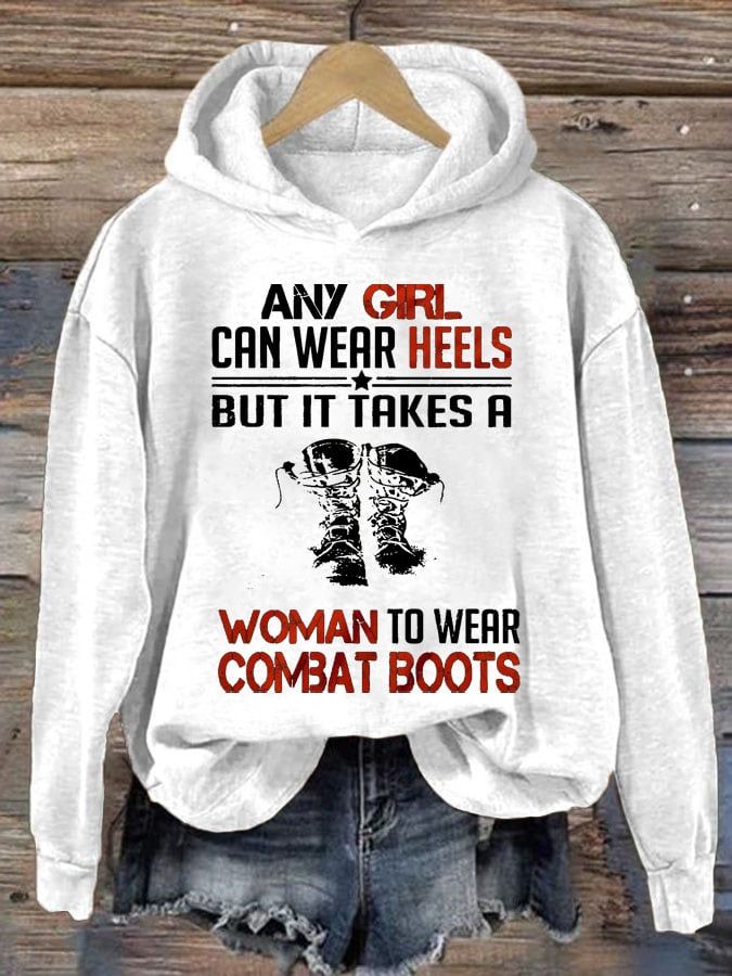 Women's Any Girl Can Wear Heels But It Takes A Woman To Wear Combat Boots Print Casual Sweatshirt