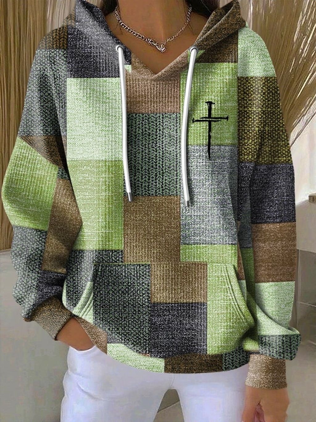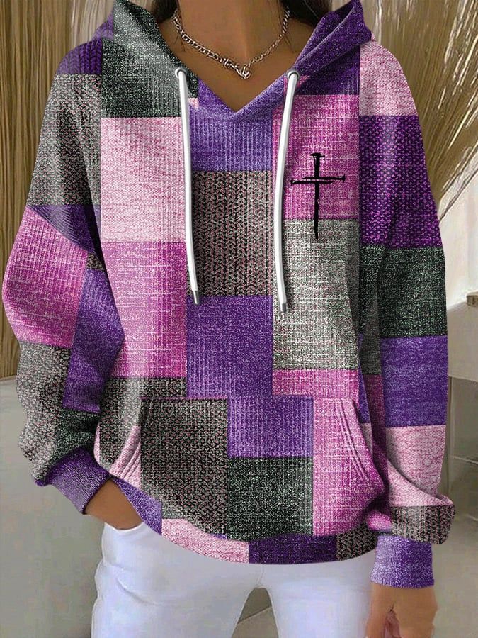 Women's Casual Retro Contrast Color Block Faith Hoodie