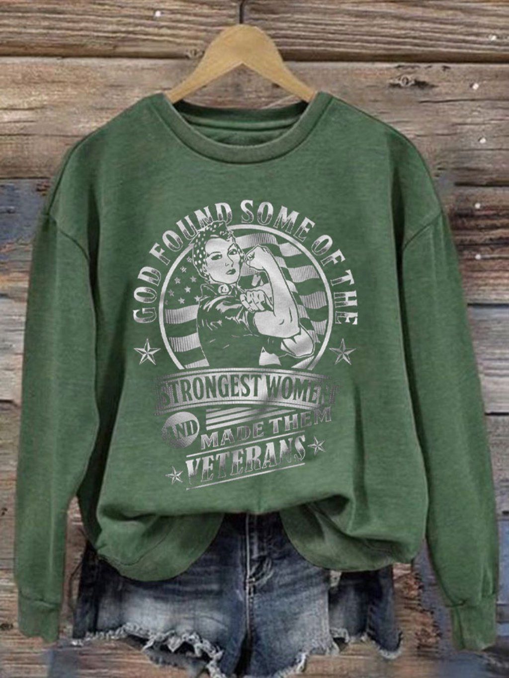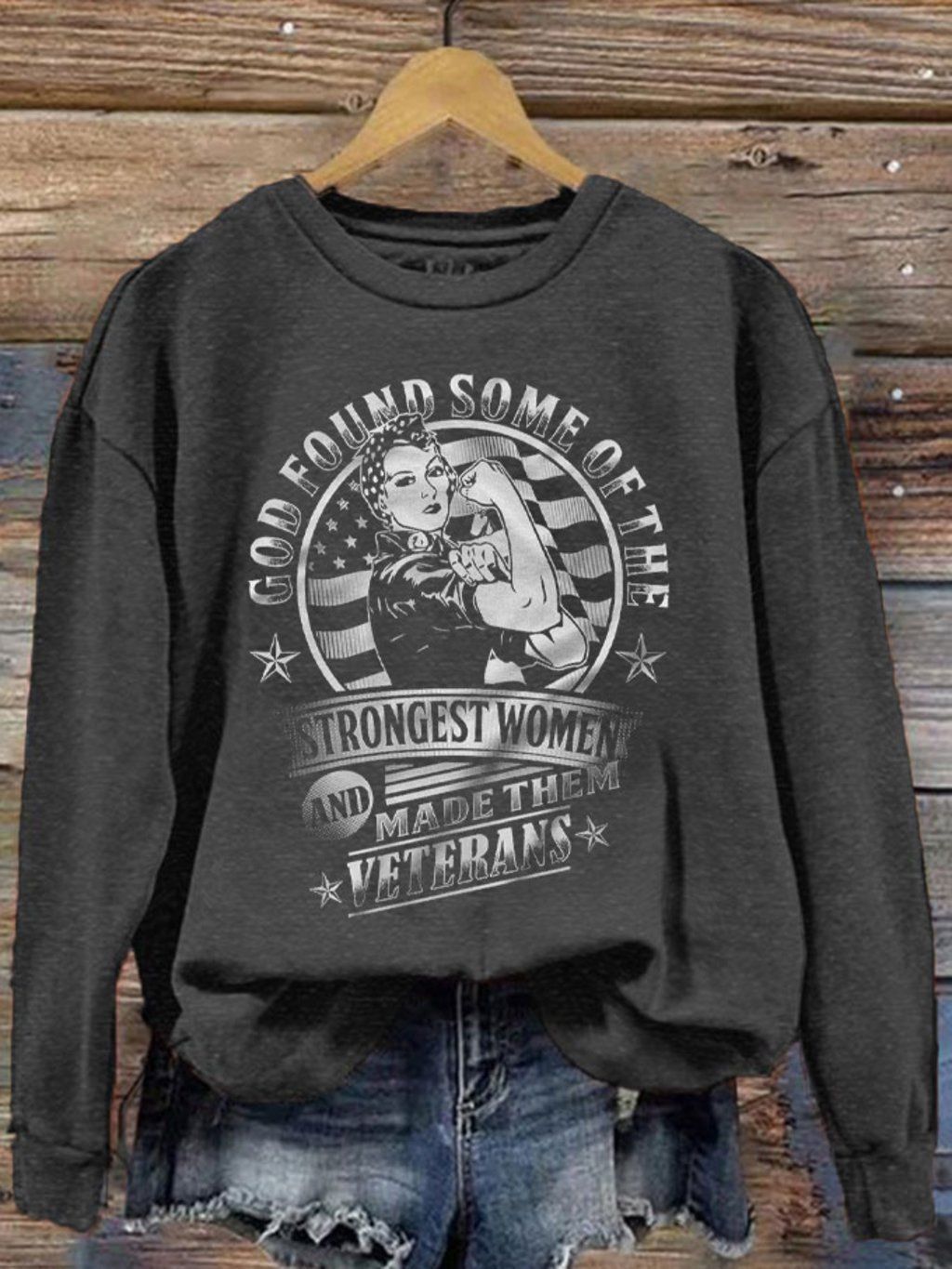 Women's God Found Some of The Strongest Woman And Made Them Veterans Day Printed Sweatshirt