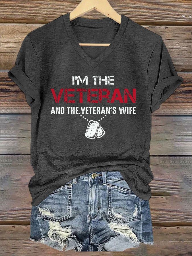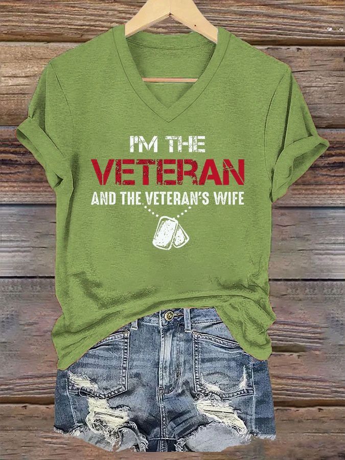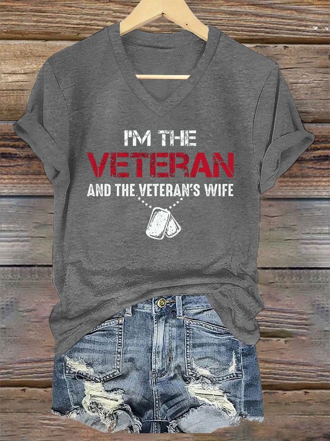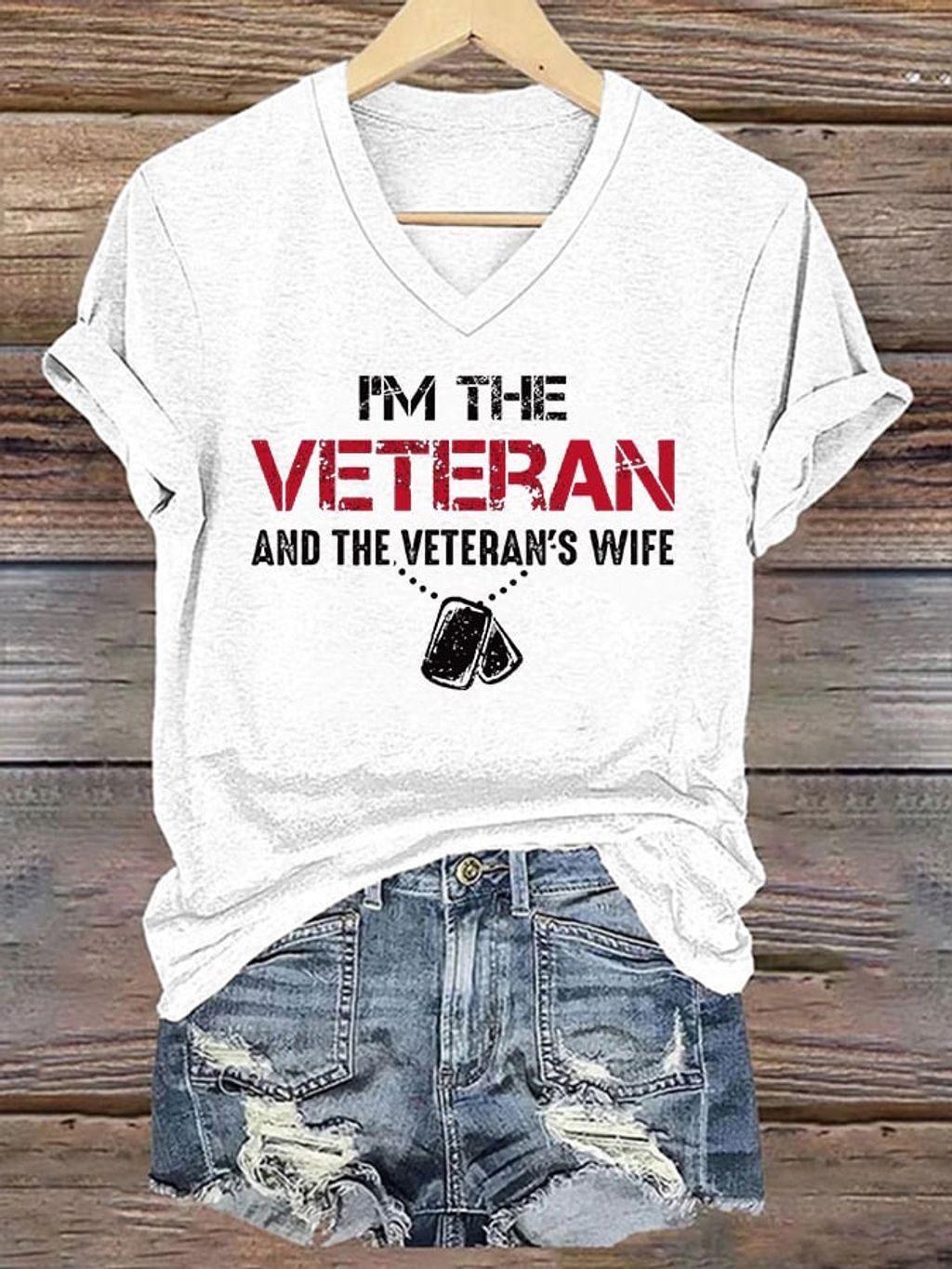 Women's I'm A Veteran And The Veteran's Wife Printed V-Neck T-Shirt
