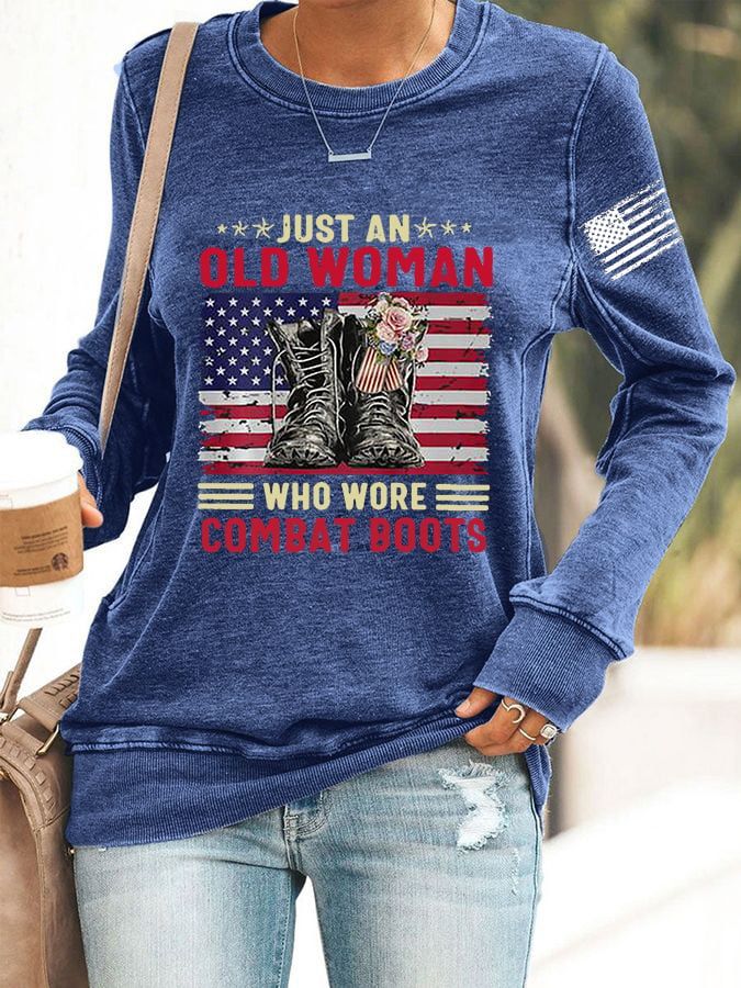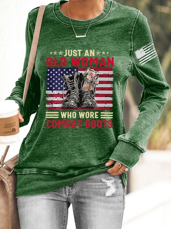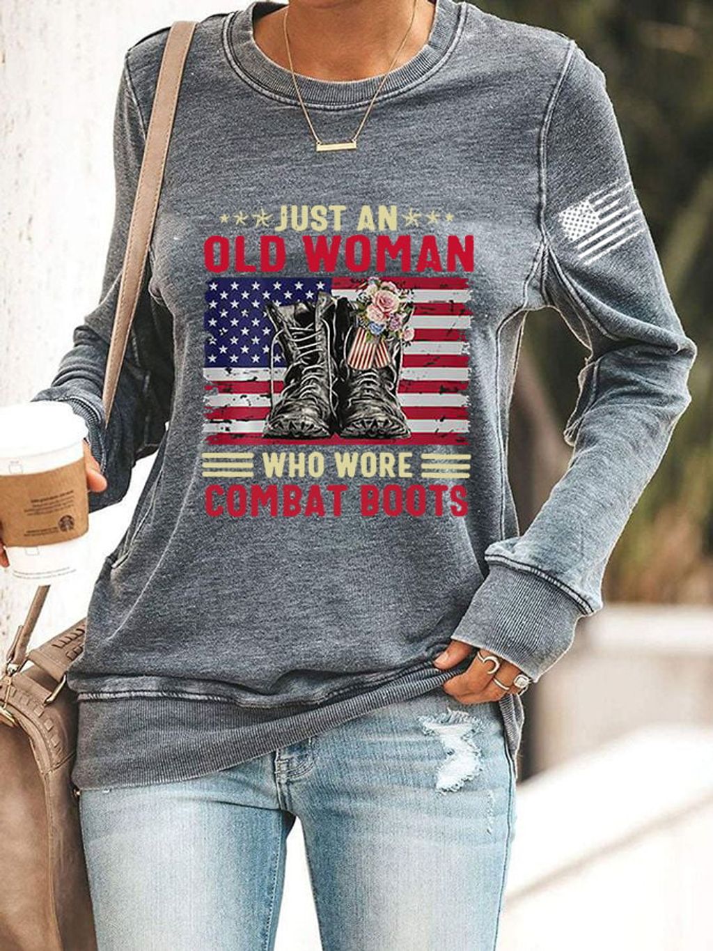 Women's Just An Old Woman Who Wore Combat Boots Print Casual Sweatshirt