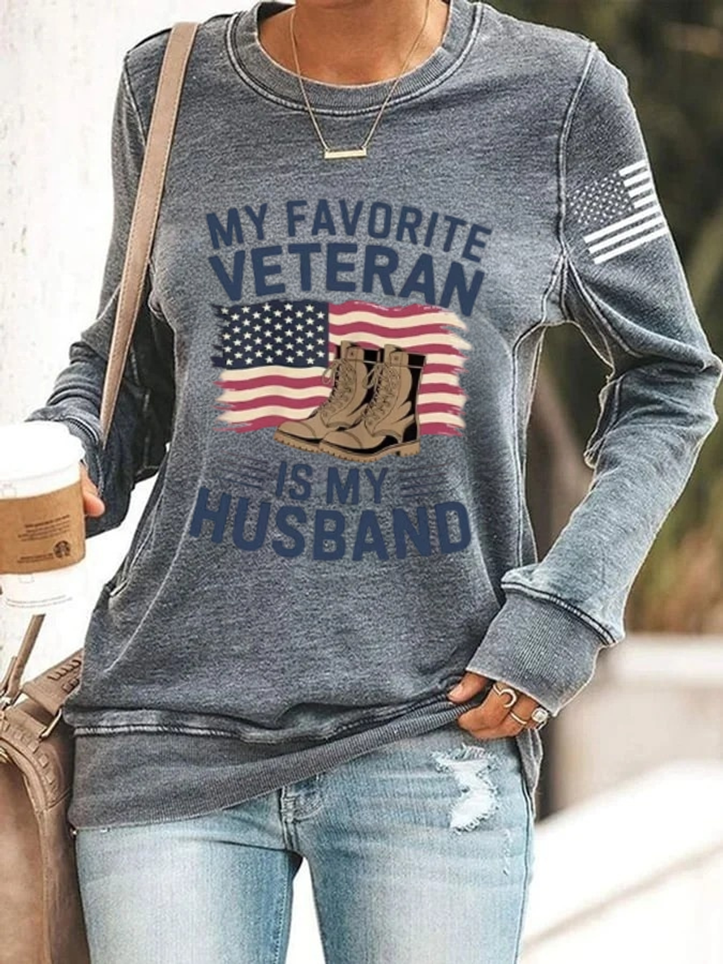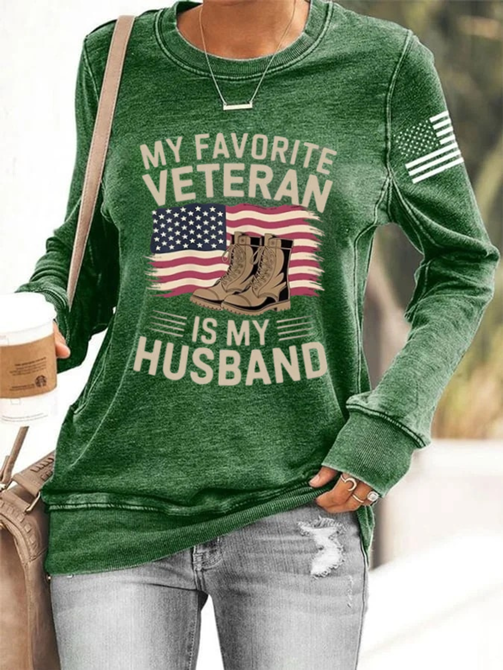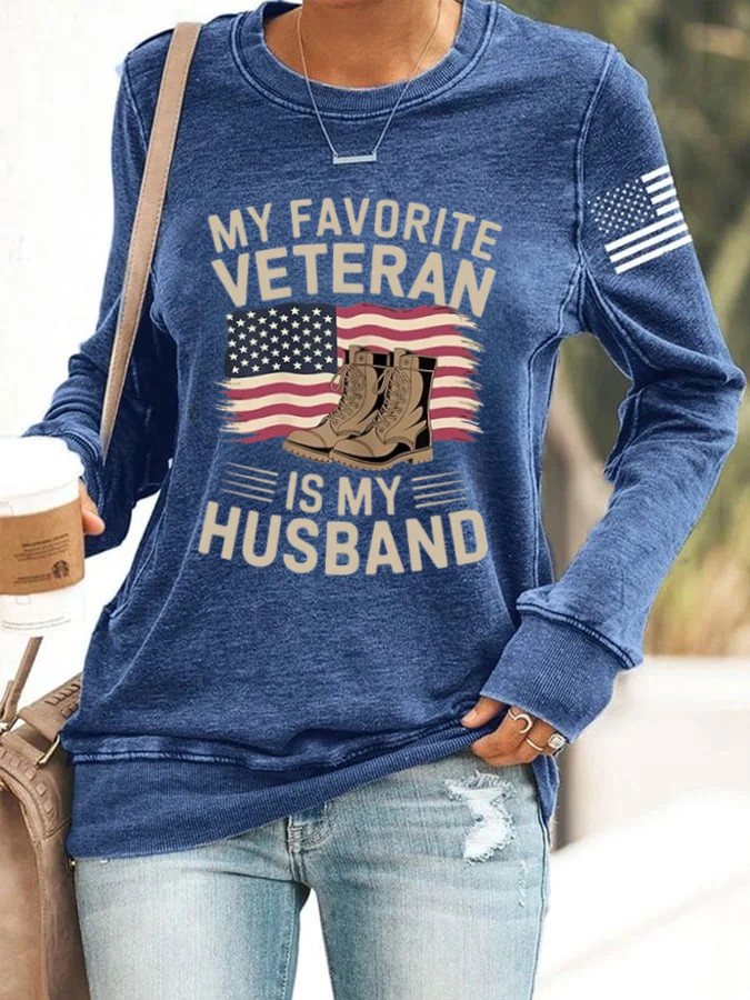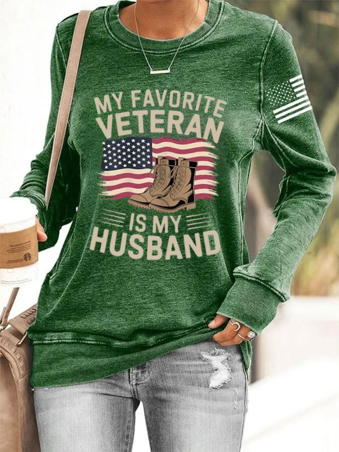 Women's 'My Favorite Veteran Is My Husband' Print Sweatshirt