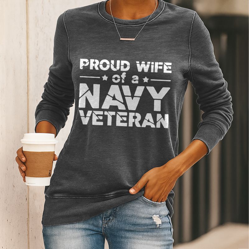 Women's Navy Veteran WifePrint Casual Sweatshirt