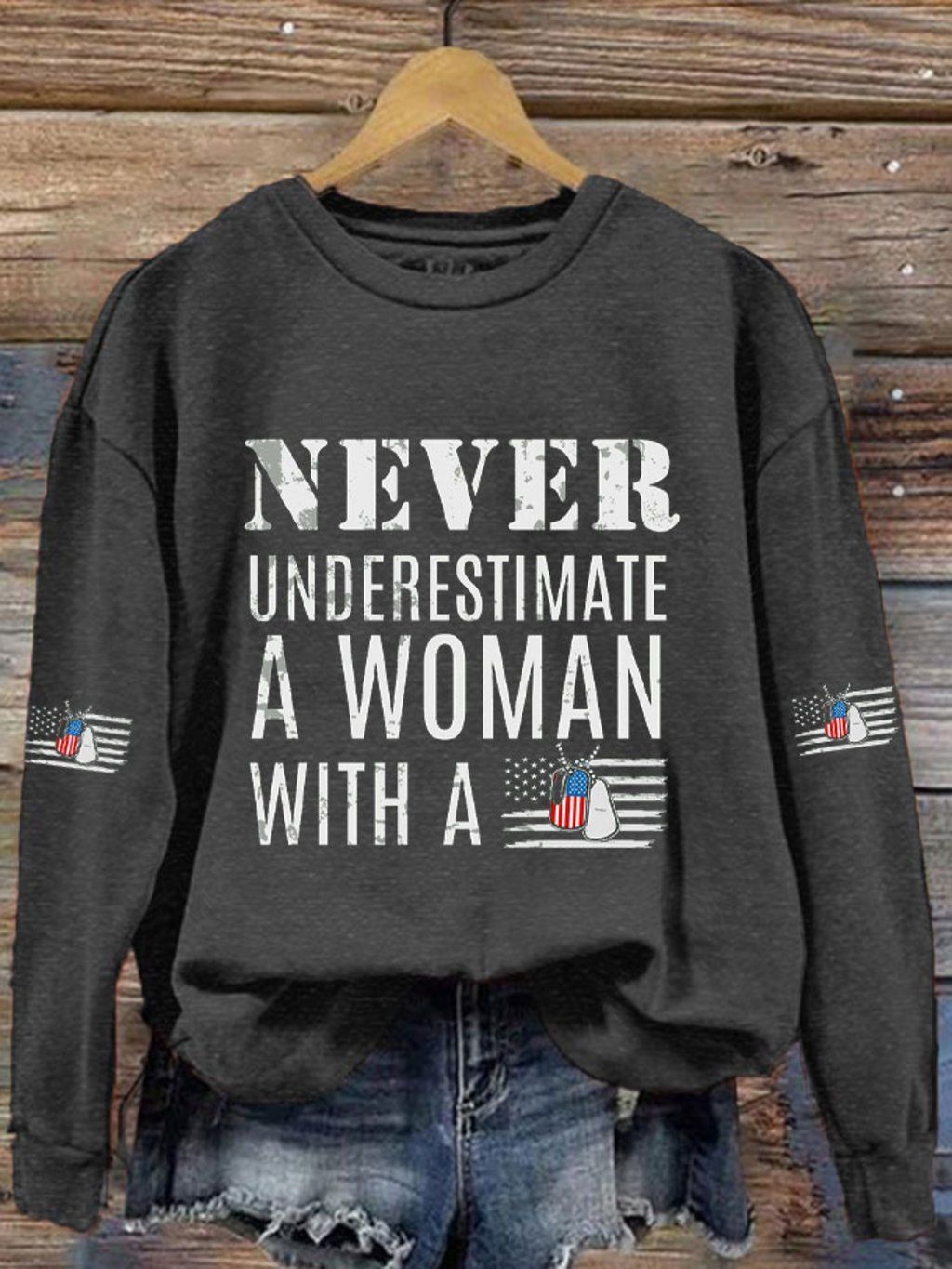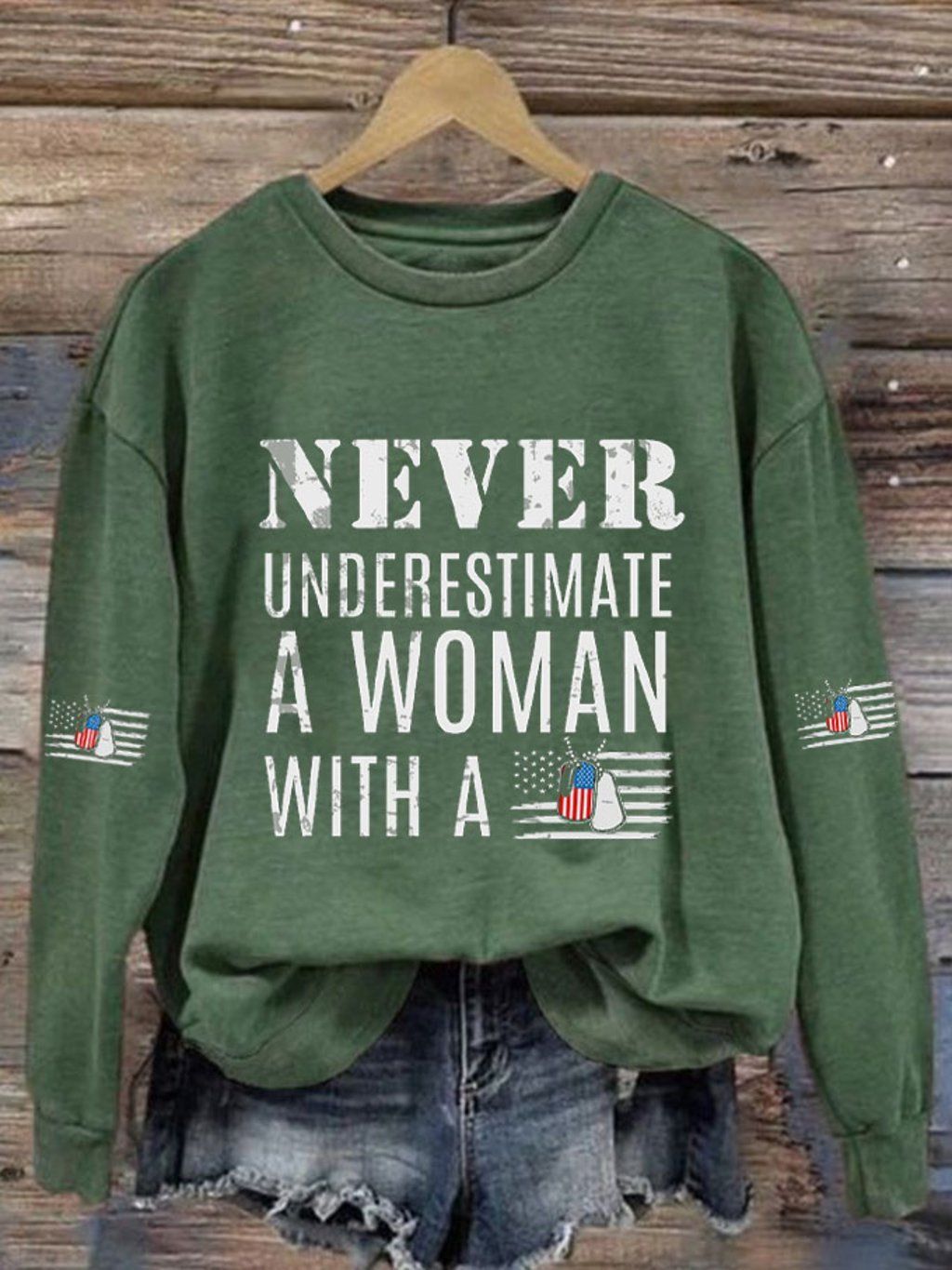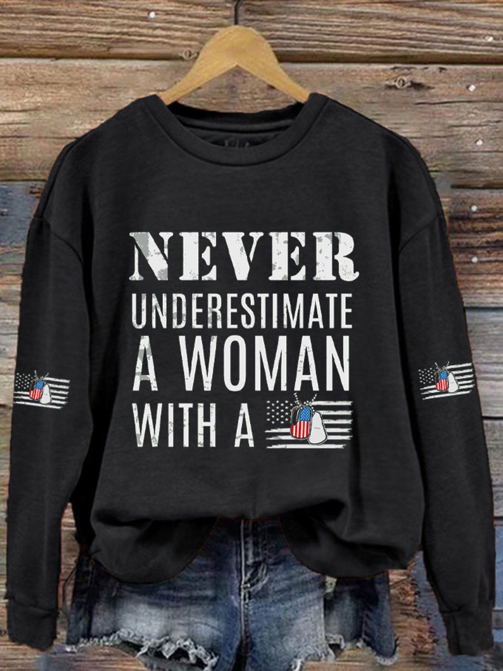 Women's Never Underestimate A Woman With A DD-214 Veterans Day Printed Sweatshirt