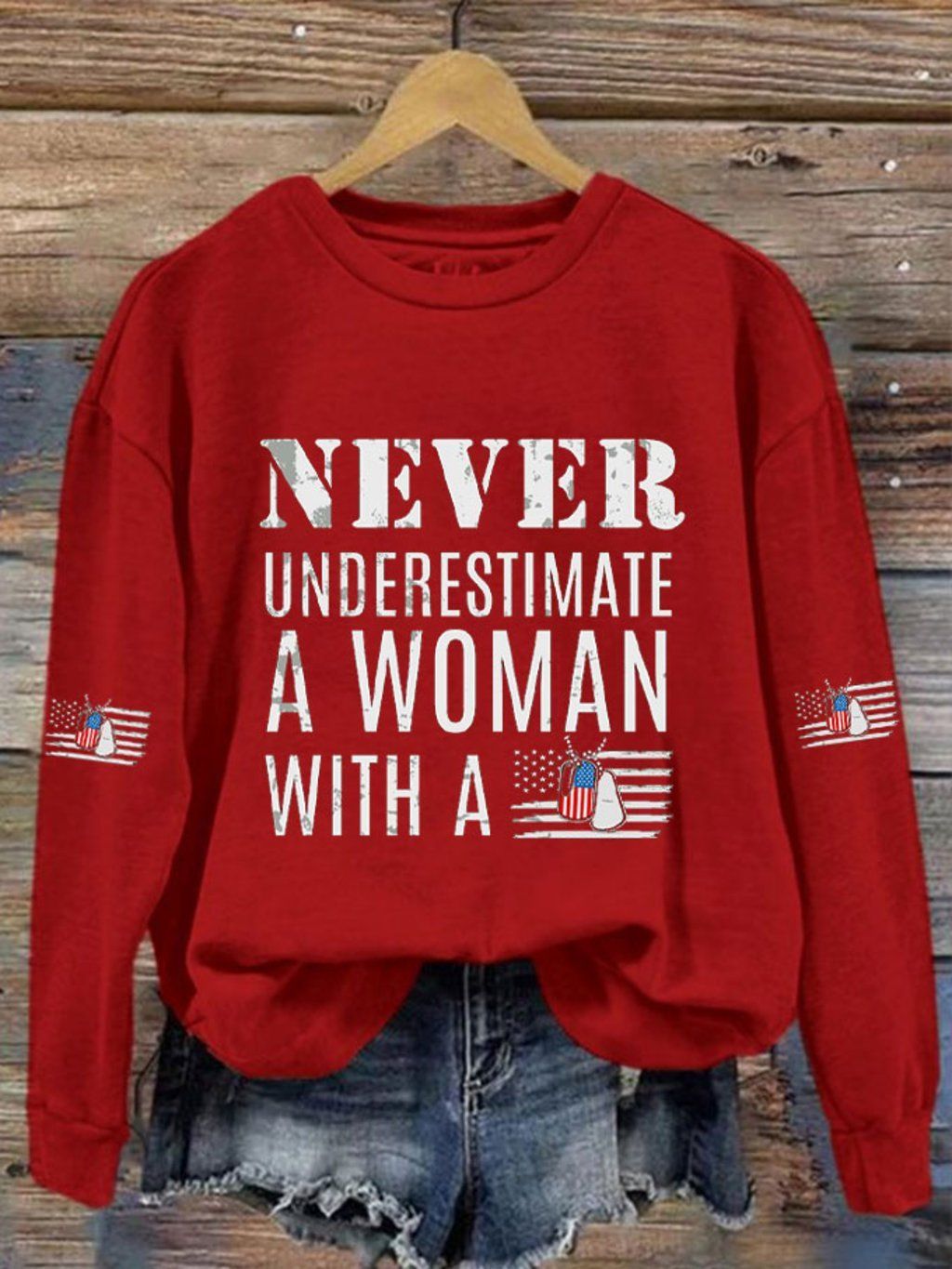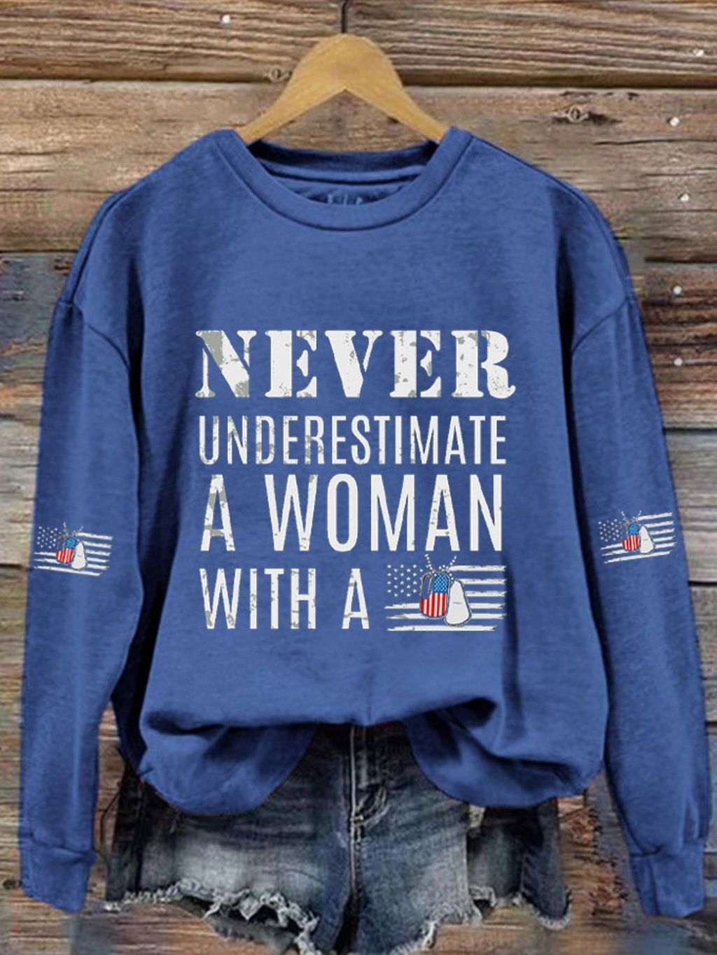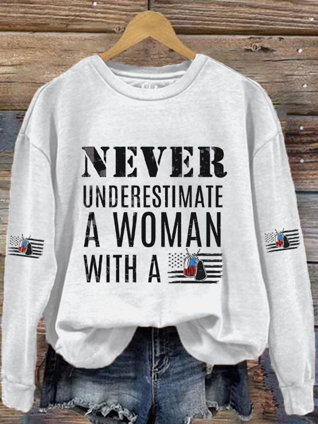 Women's Never Underestimate A Woman With A DD-214 Veterans Day Printed Sweatshirt