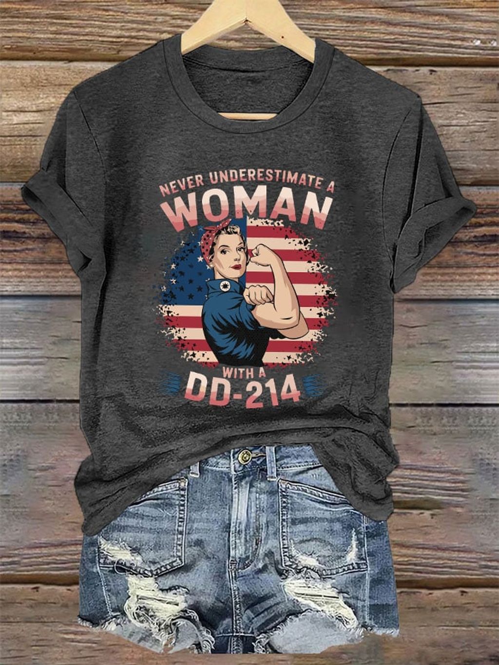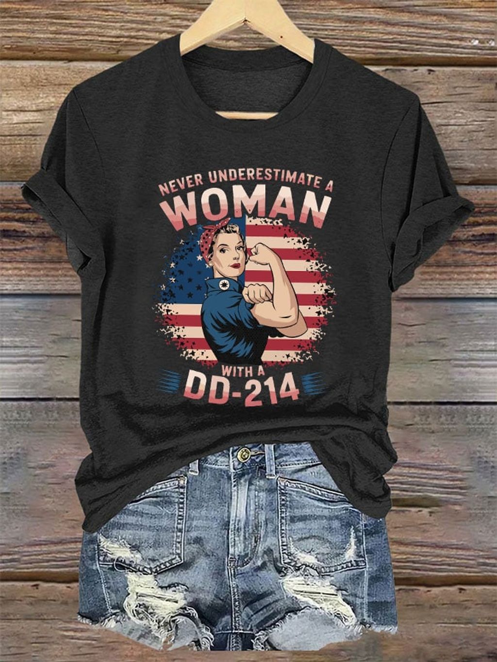 Women's "Never Underestimate a Woman with DD-214" Print T-Shirt