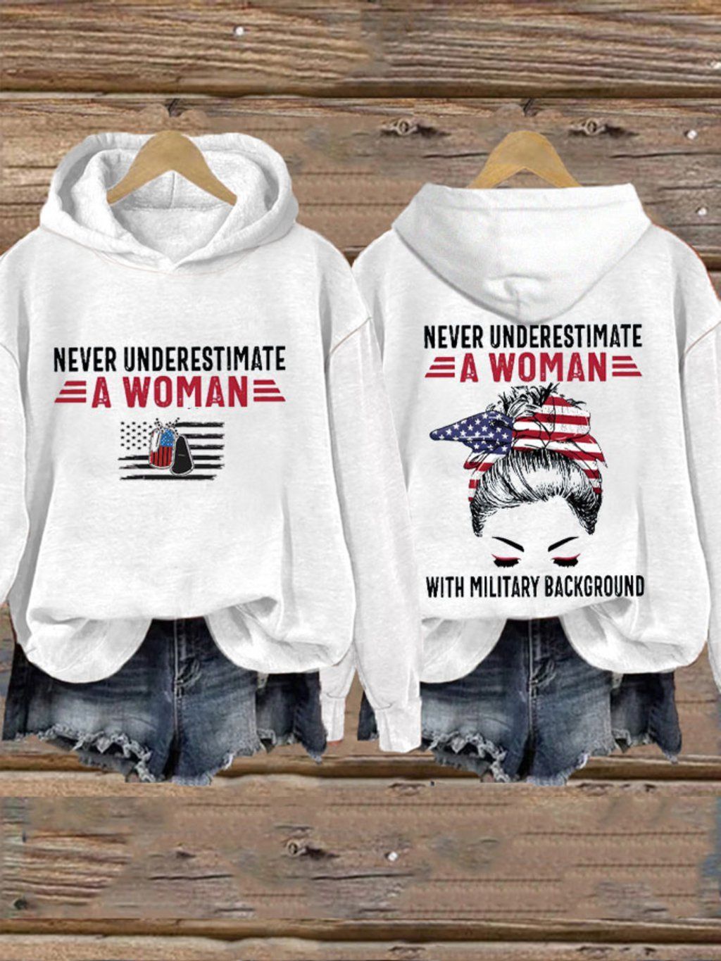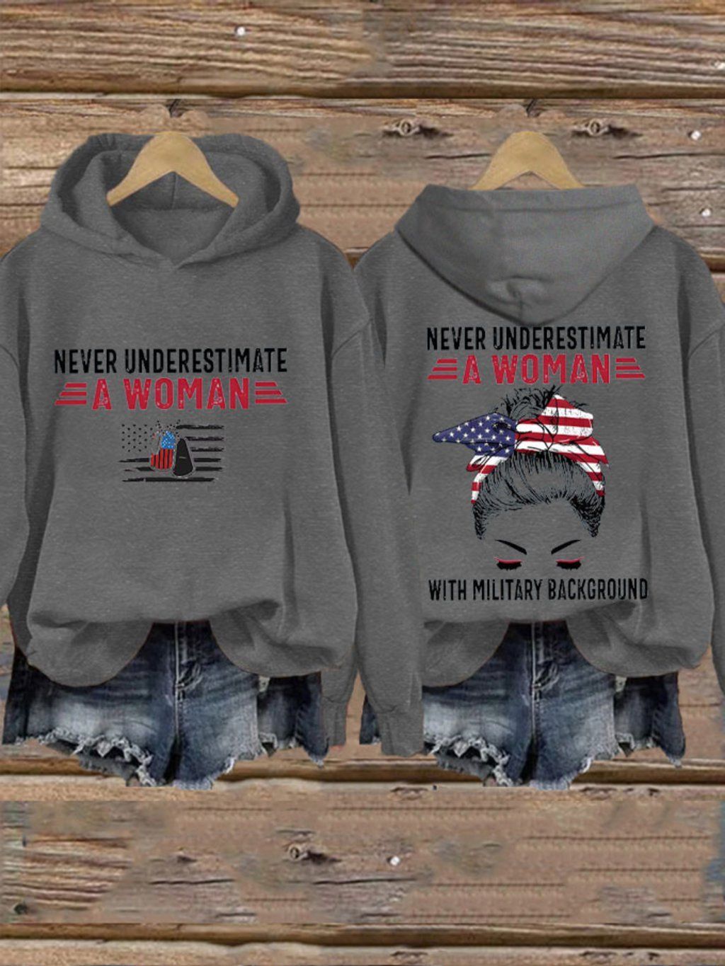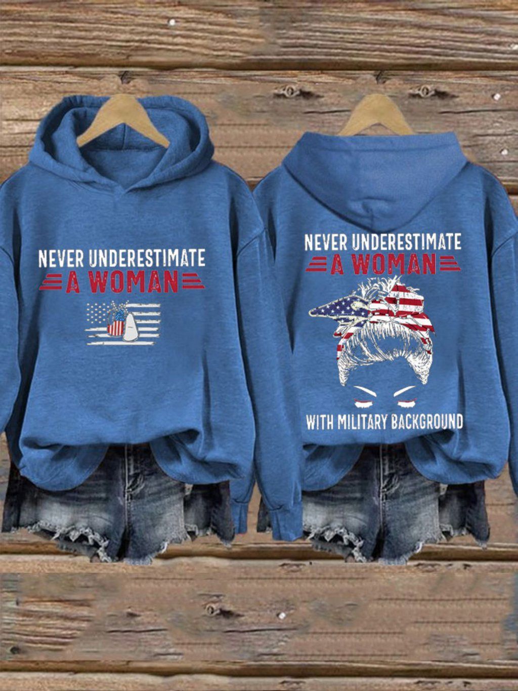 Women's Never Underestimate A Woman With Military Background Veterans Day Printed Sweatshirt