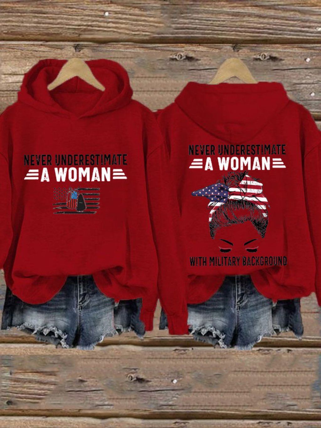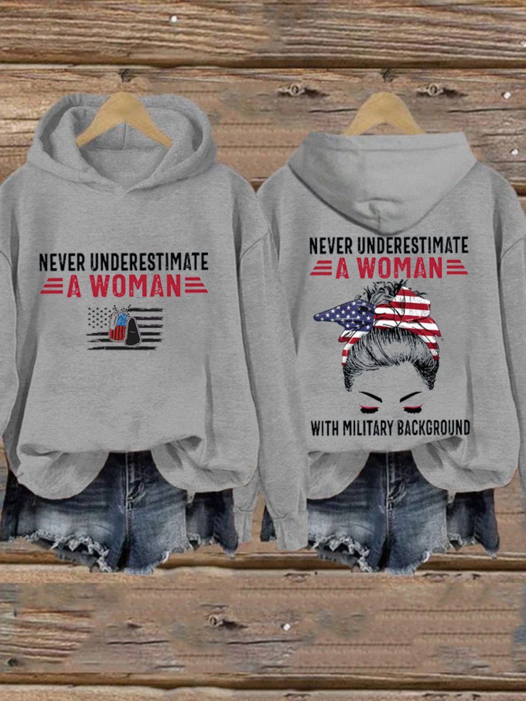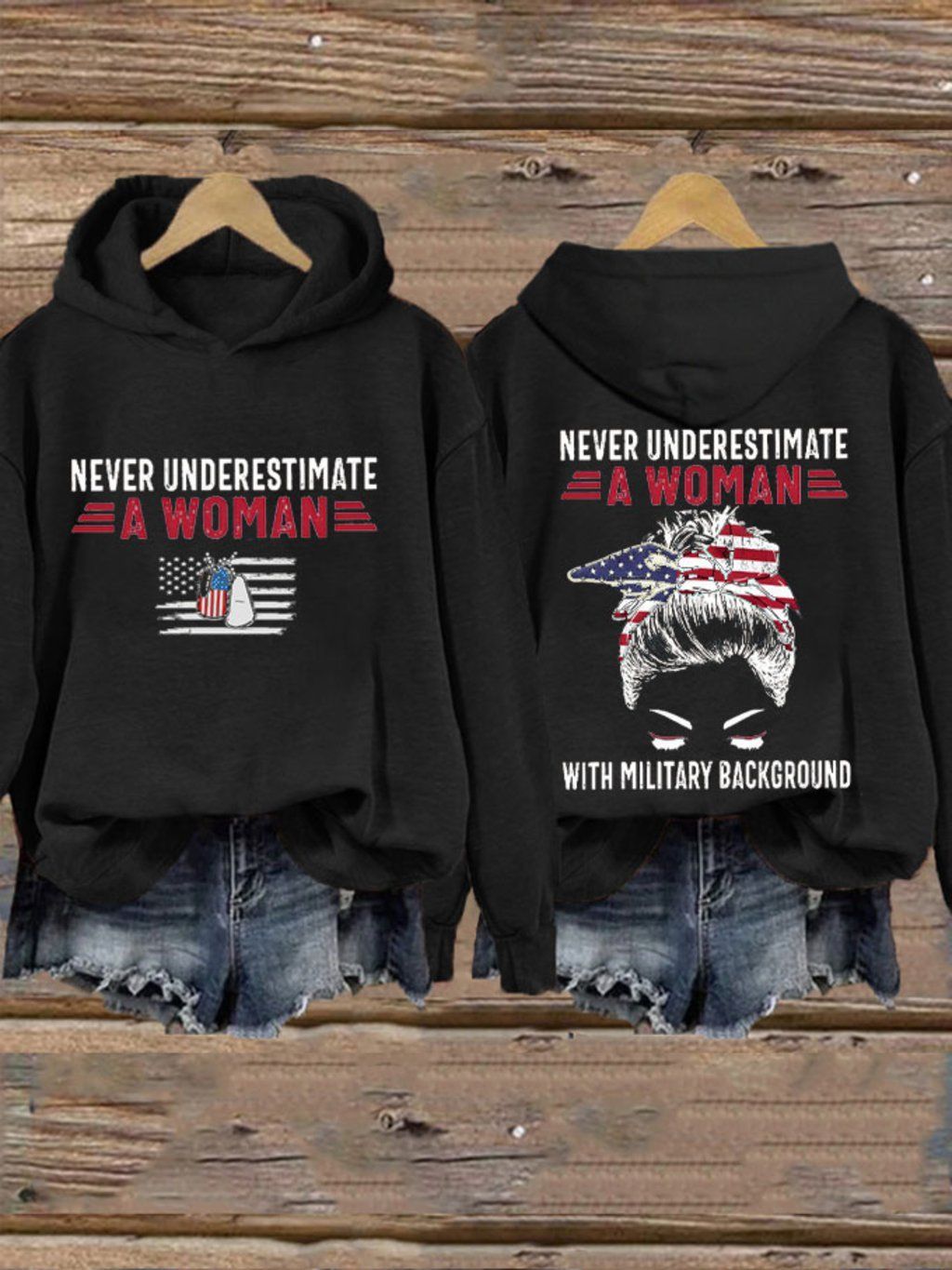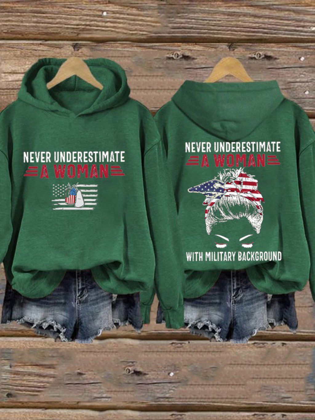 Women's Never Underestimate A Woman With Military Background Veterans Day Printed Sweatshirt