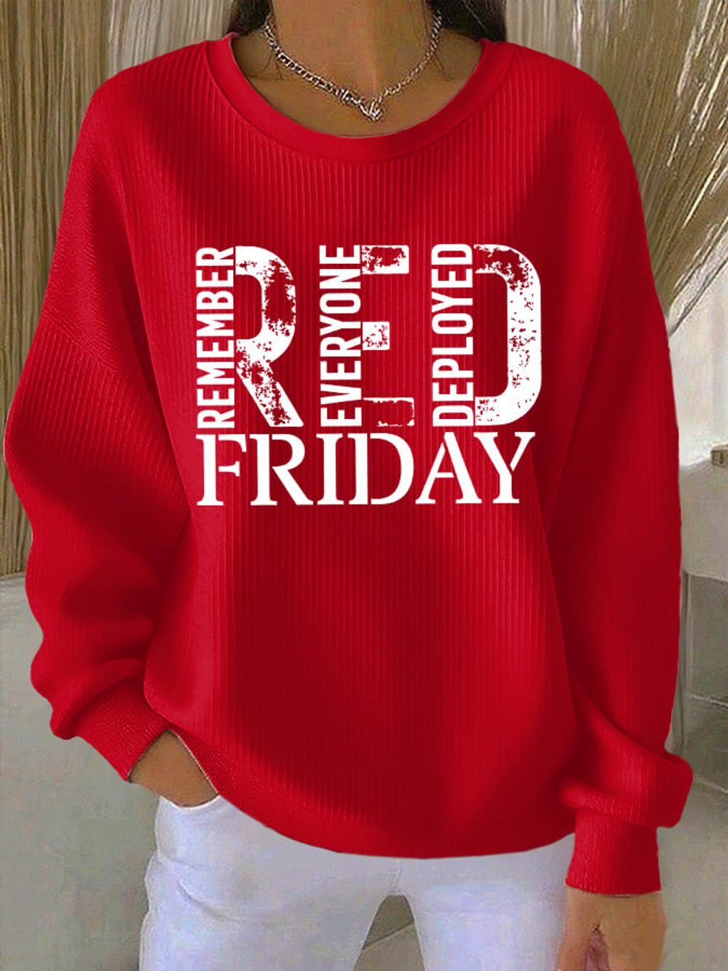 Women's On Friday We Wear Red Print Round Neck Sweatshirt