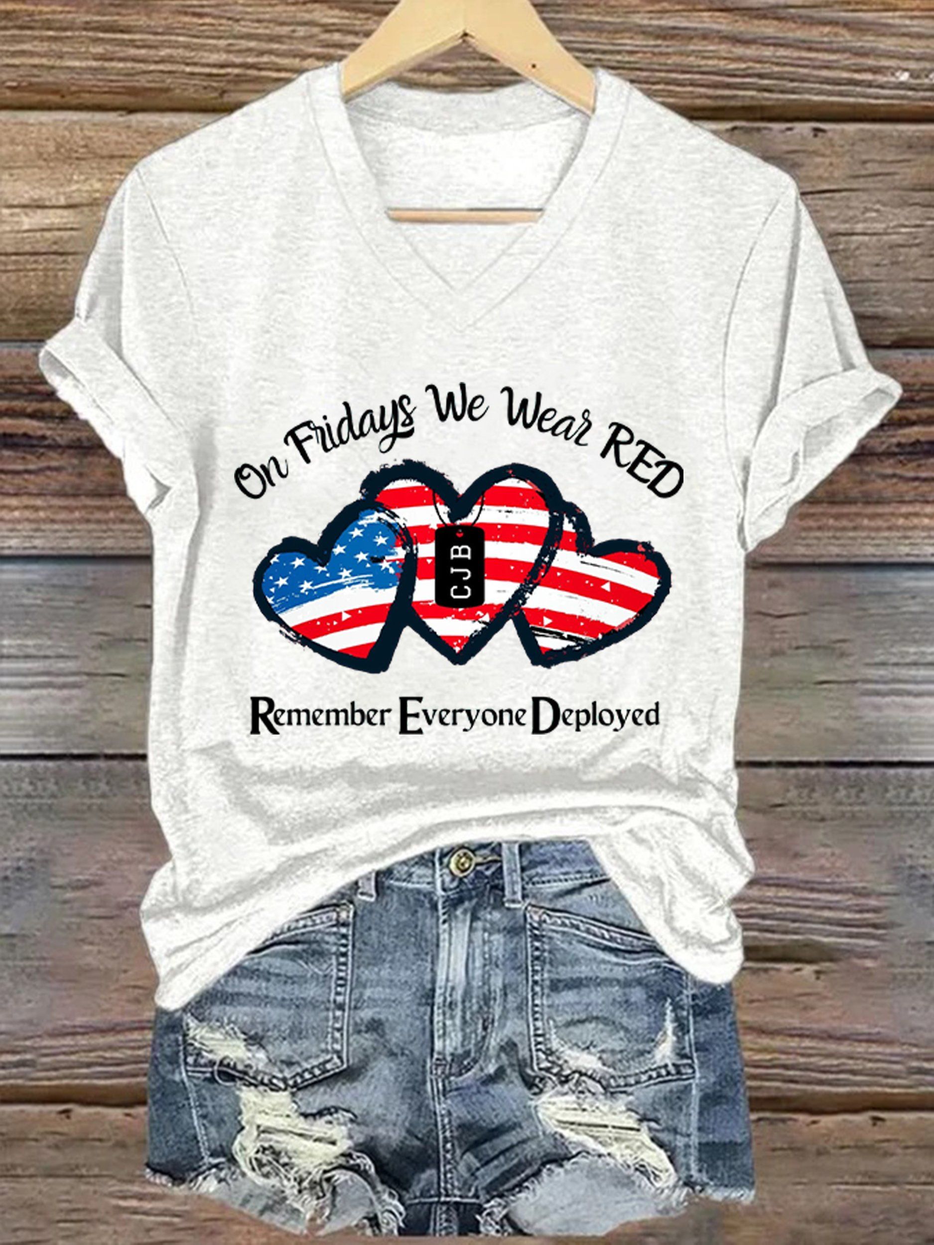Women's On Fridays We Wear RED Print V Neck T-shirt