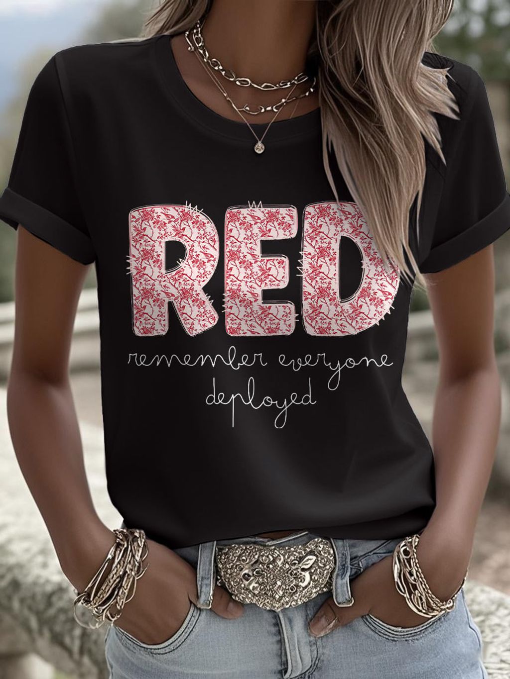 Women's On Fridays We Wear RED Remember Everyone Deployed Print T-shirt