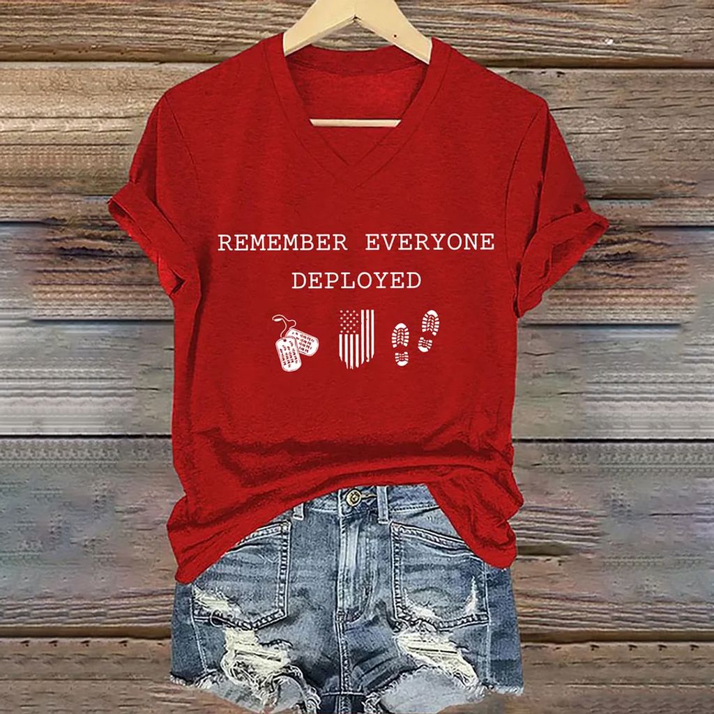 Women's On Fridays We Wear RED Remember Everyone Deployed Print V Neck T-shirt