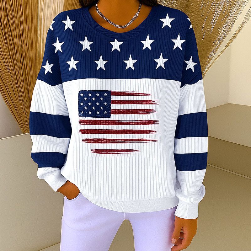 Women's Patriotic Art Print Crew Neck Sweatshirt