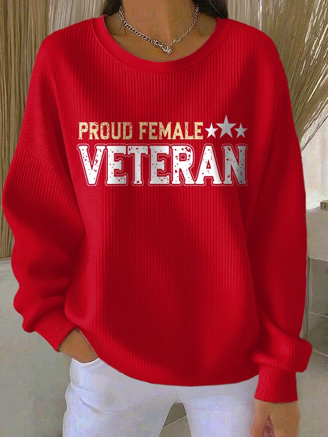 Women's Proud Female Veteran Print Round Neck Sweatshirt