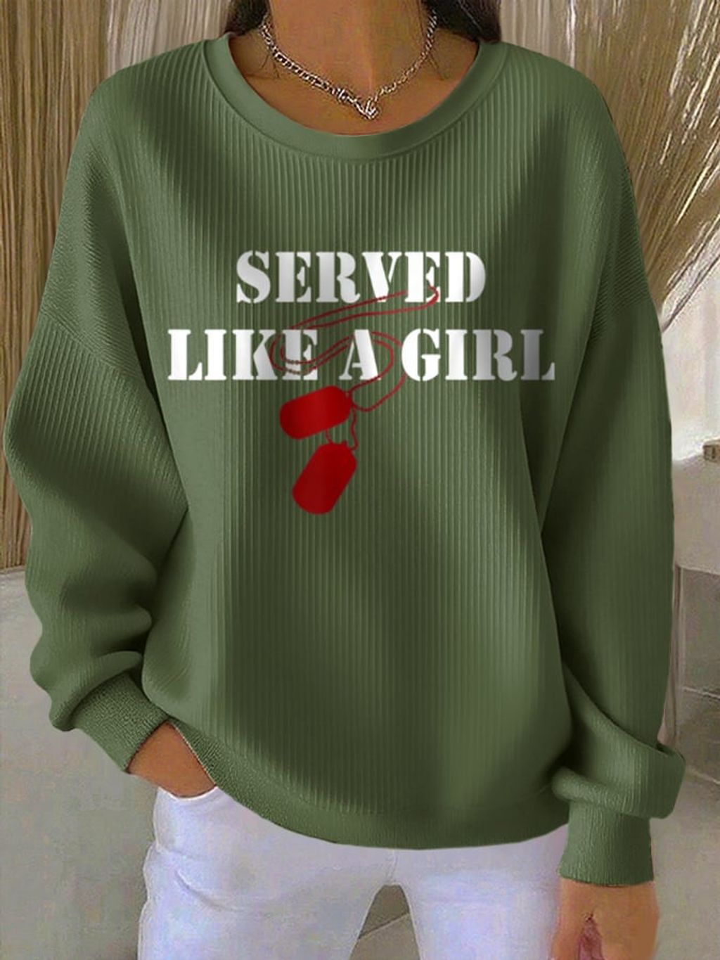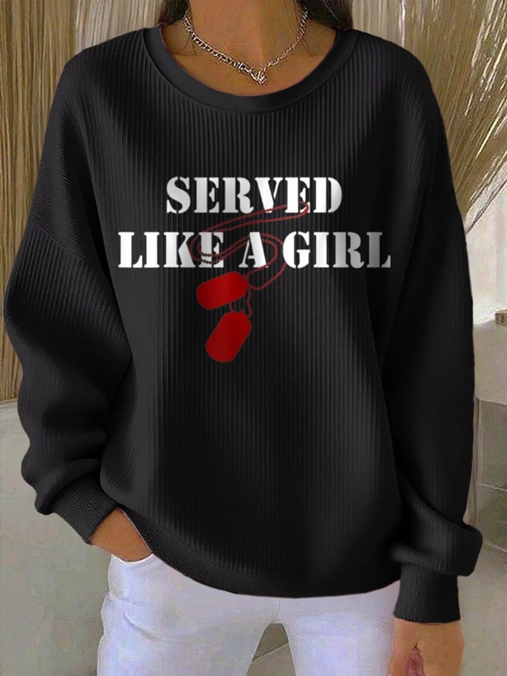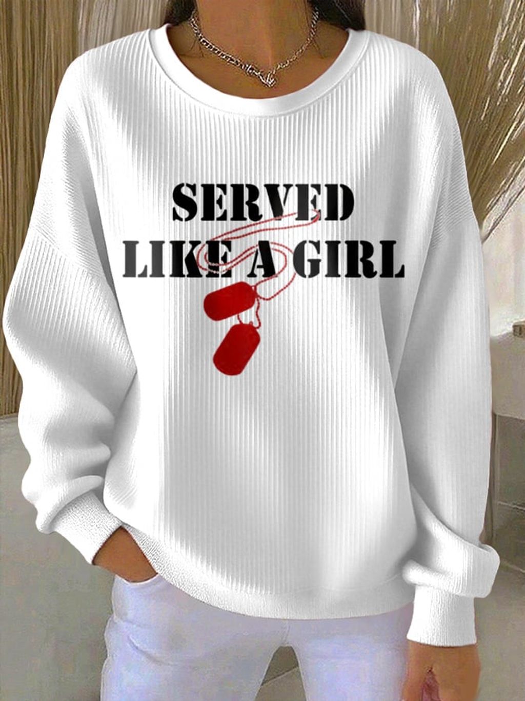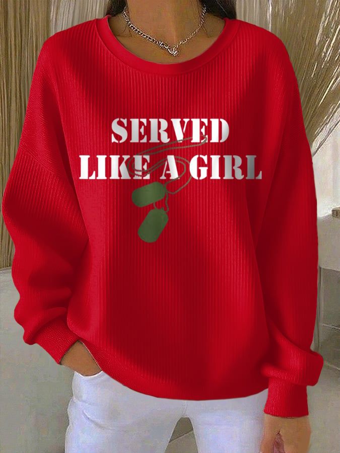 Women's Served Like A Girl Print Round Neck Sweatshirt