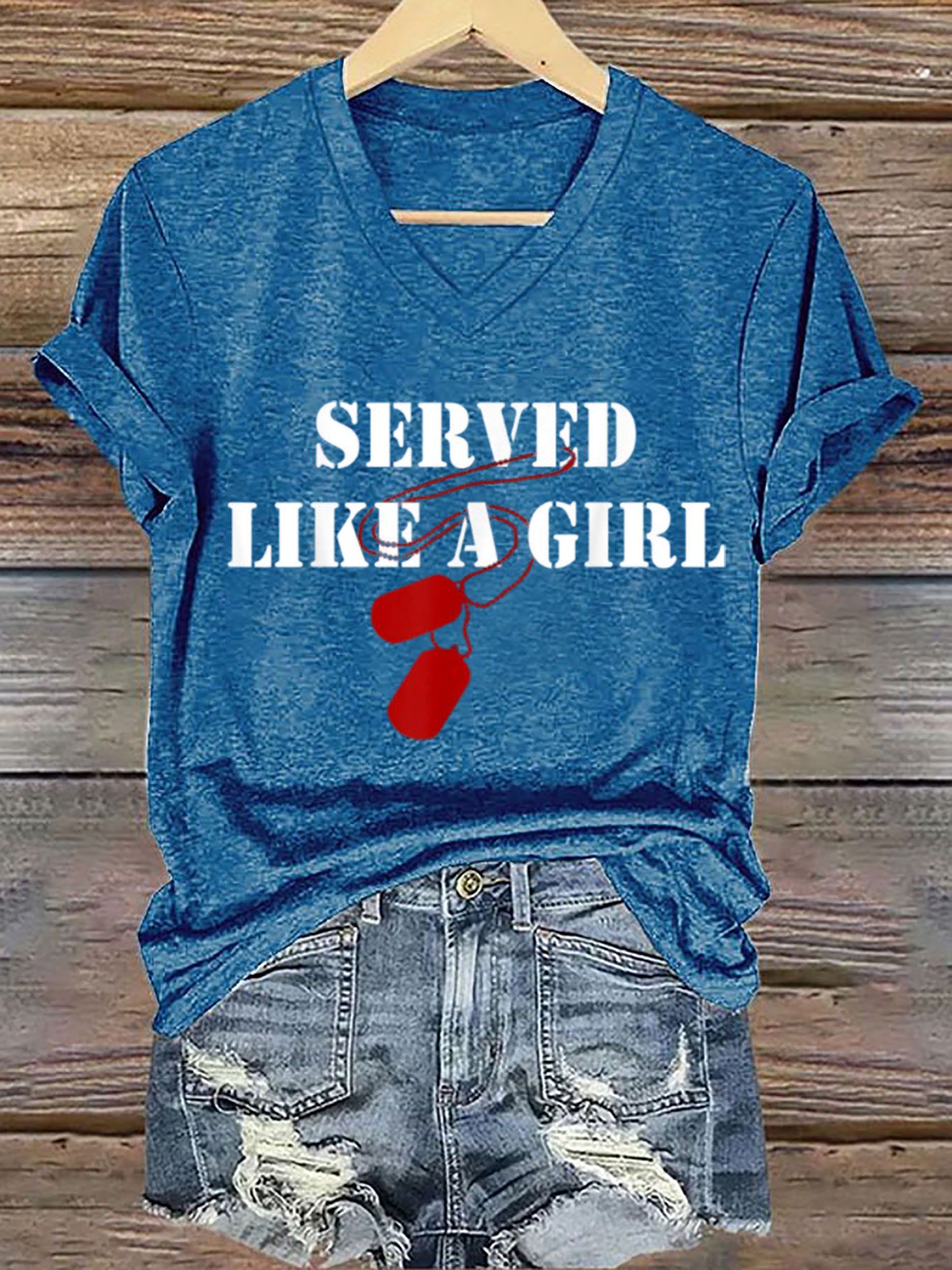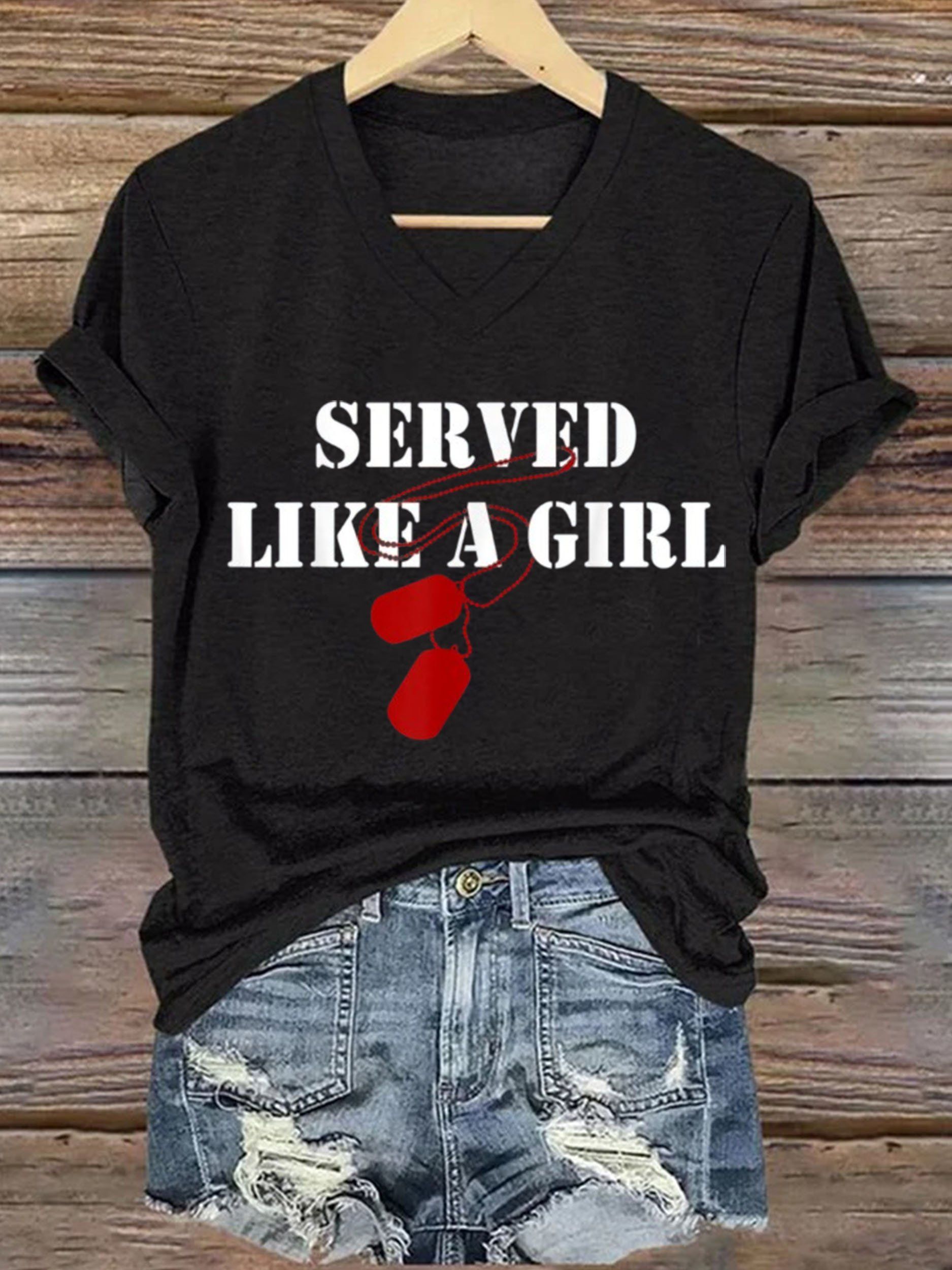Women's Served Like A Girl Printed Short-Sleeved T-Shirt