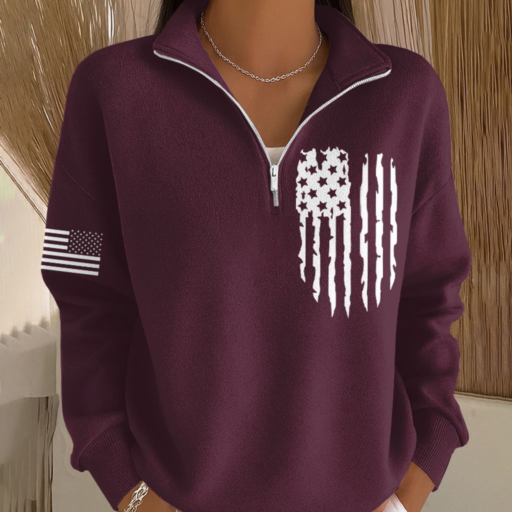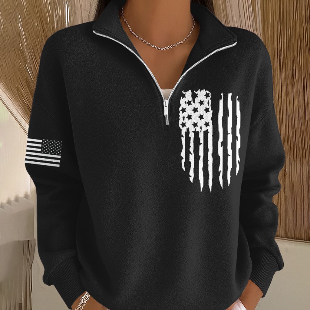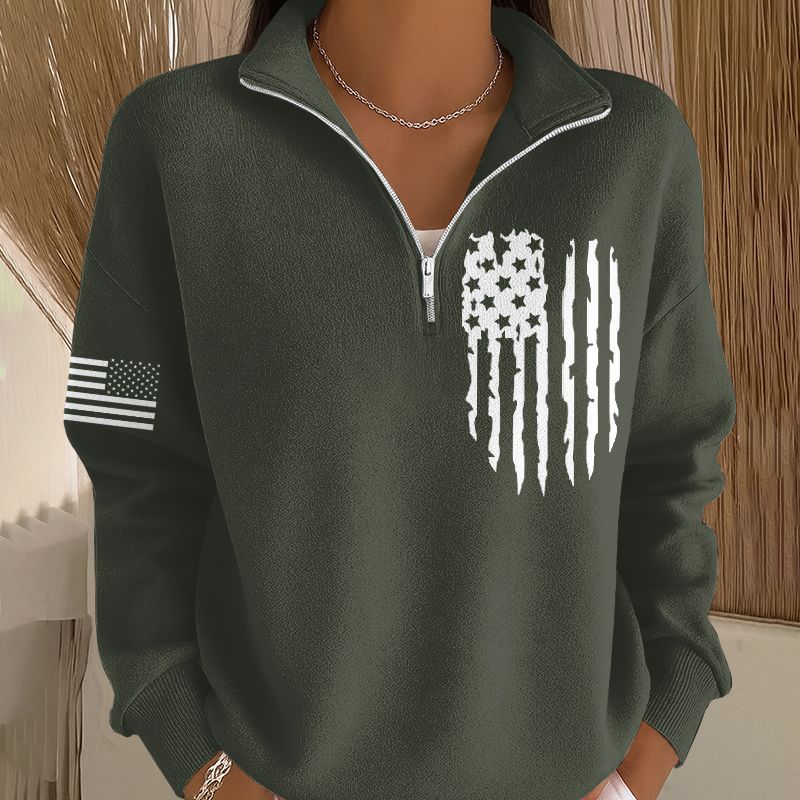 Women's Veteran Art Print Casual Zip-Up Sweatshirt