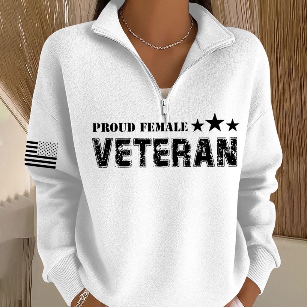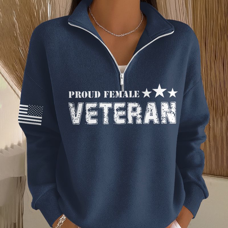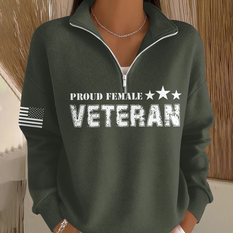 Women's Veteran Art Print Casual Zip-Up Sweatshirt