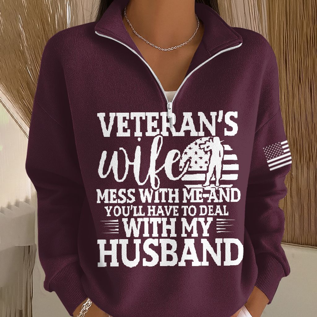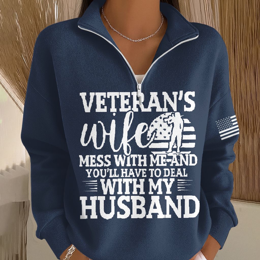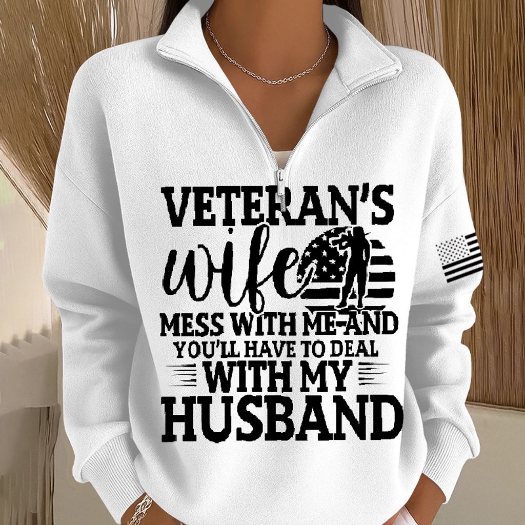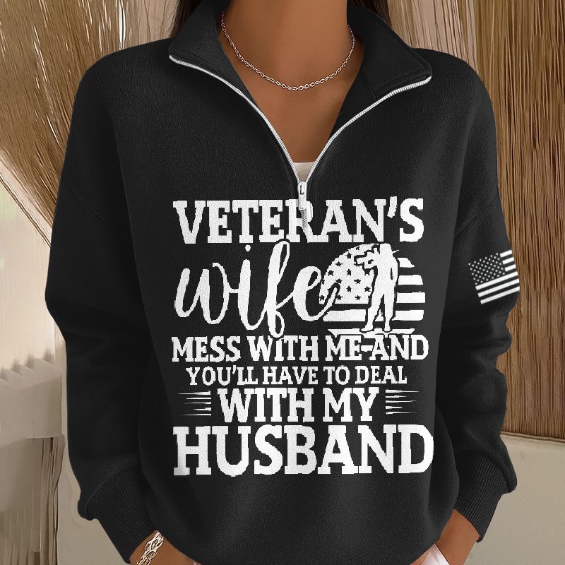 Women's Veteran Art Print Casual Zip-Up Sweatshirt