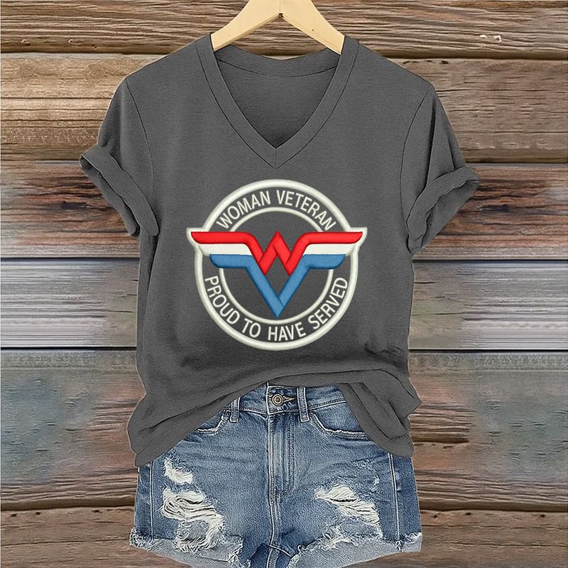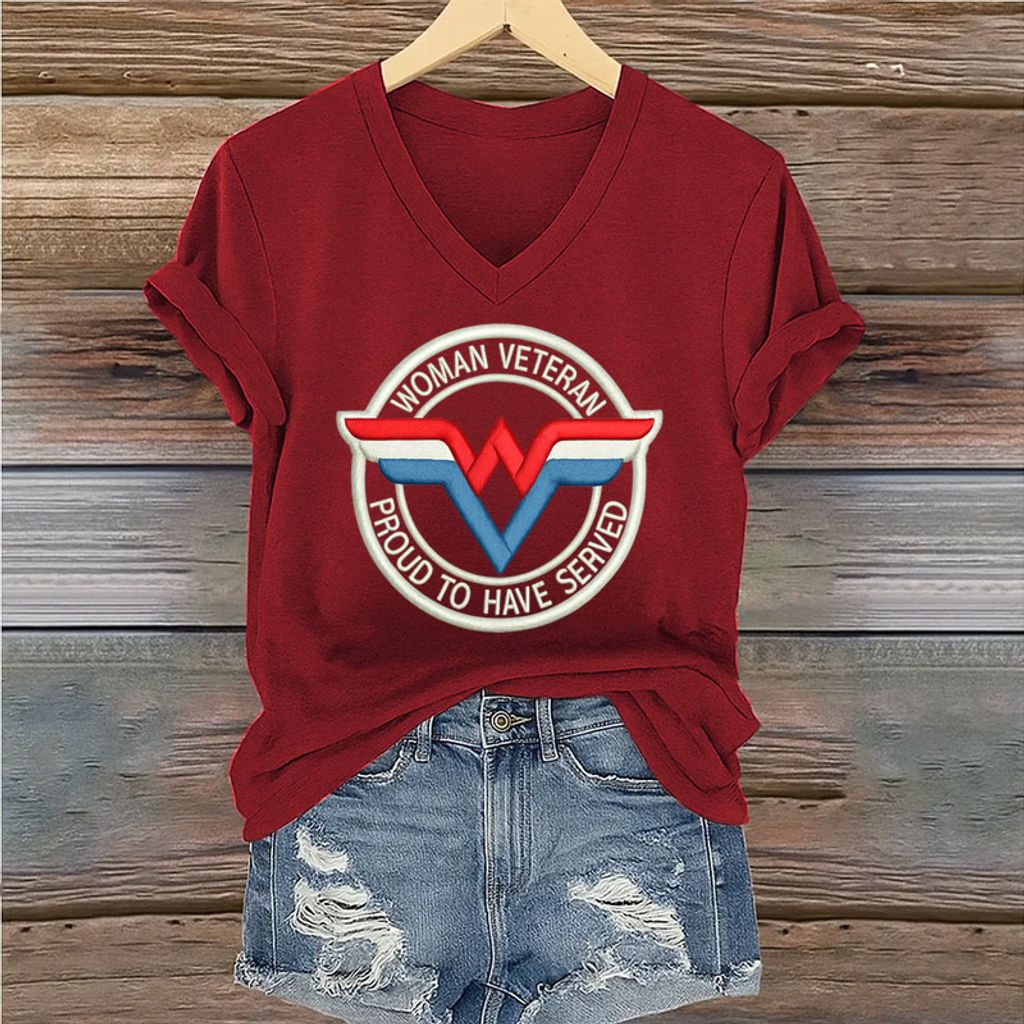 Women's Veteran Print Casual V-Neck Short Sleeve T-Shirt