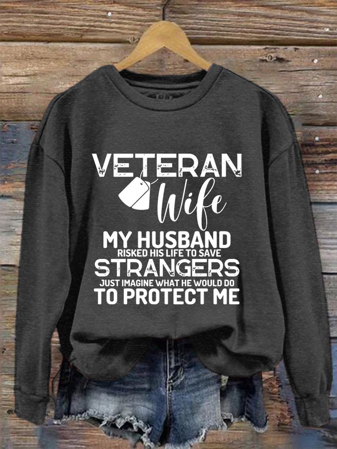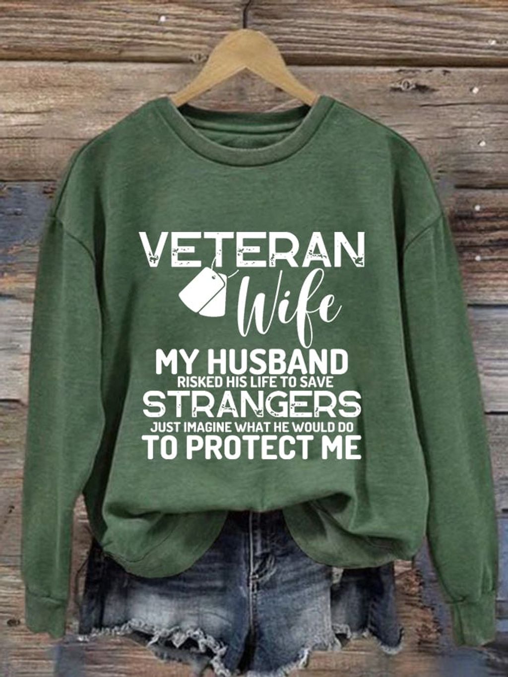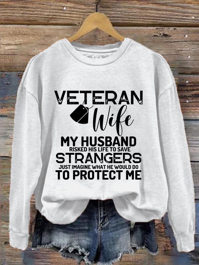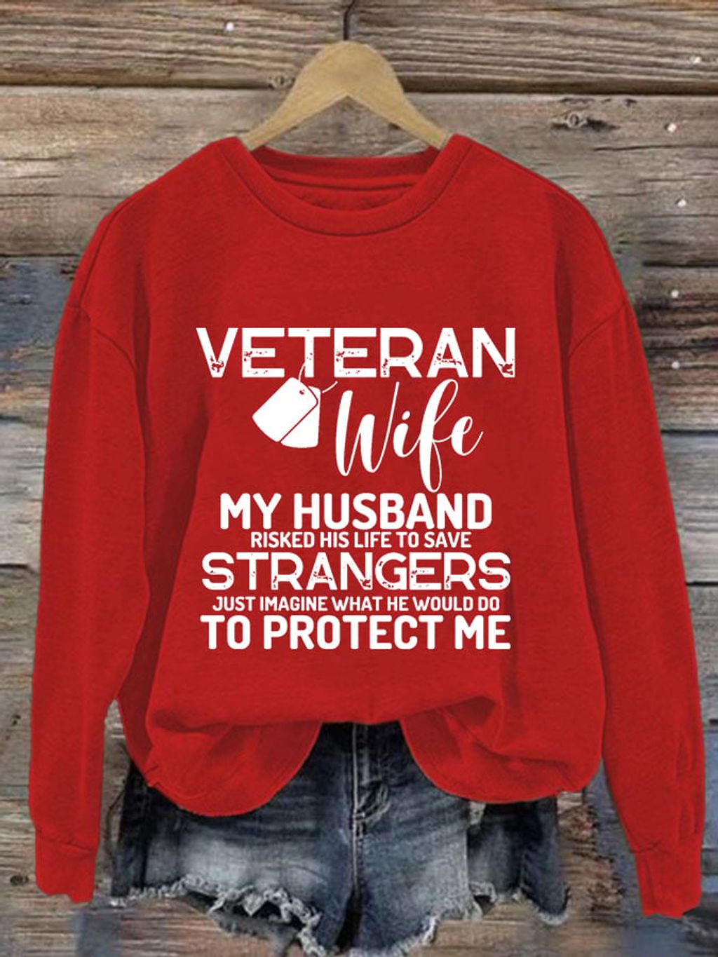 Women's Veteran Wife Just Imagine What He Would Do To Protect Me Print Crew Neck Sweatshirt