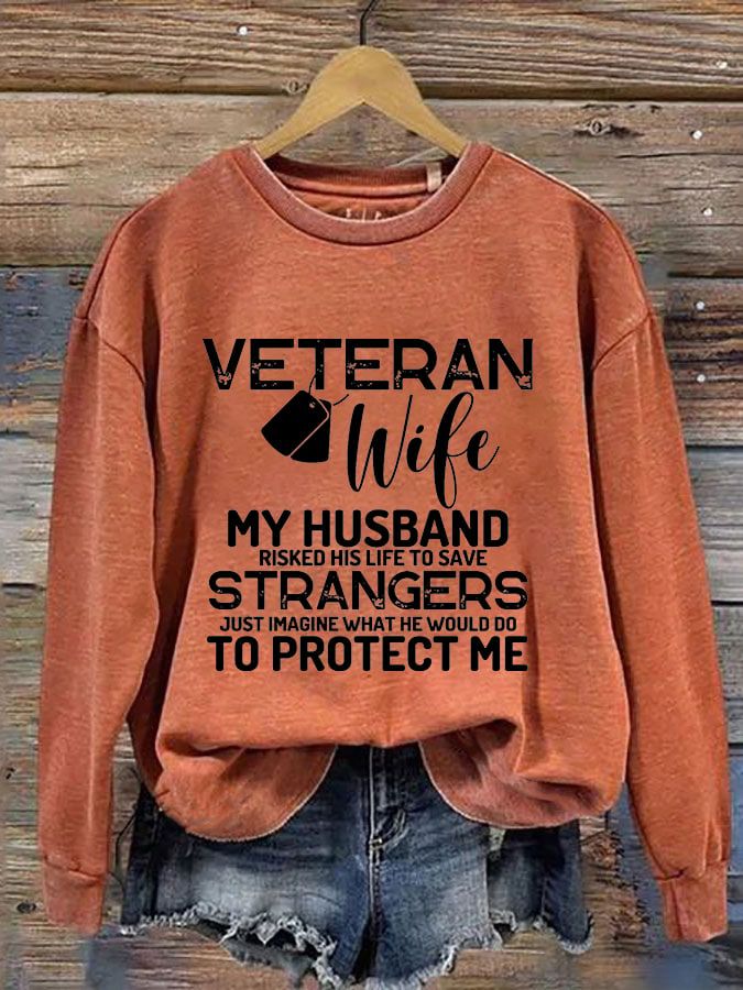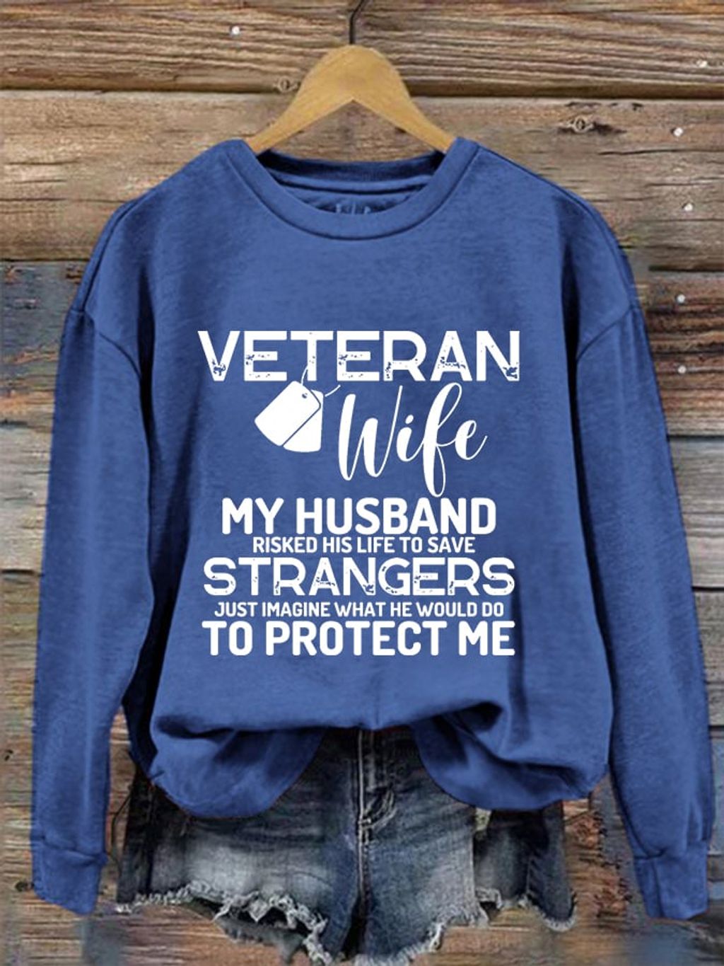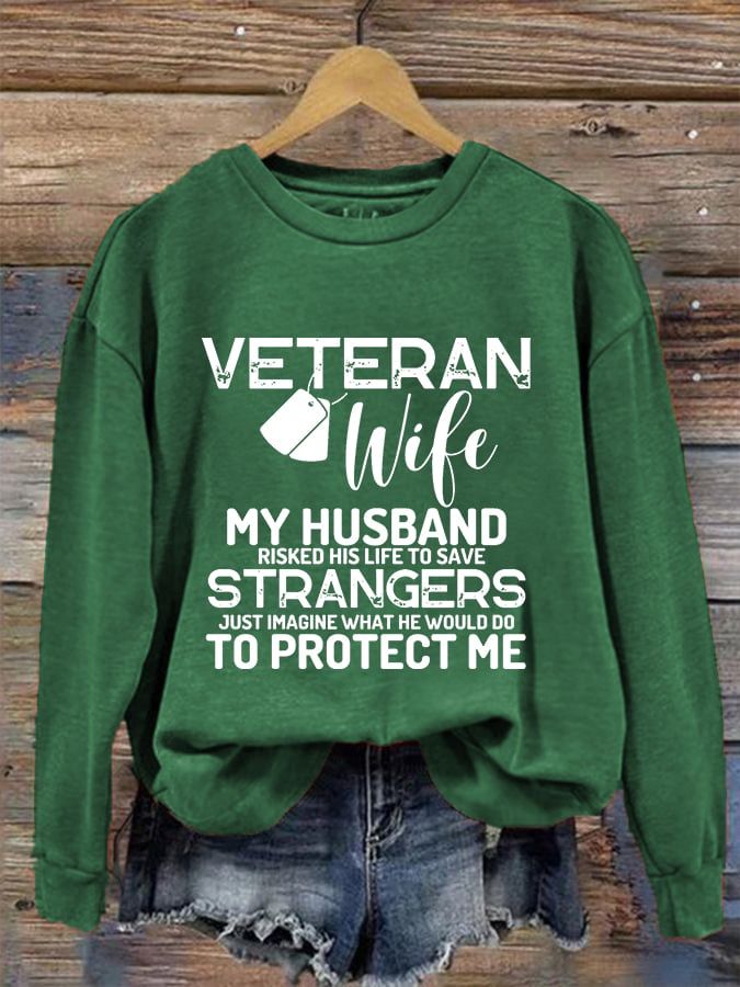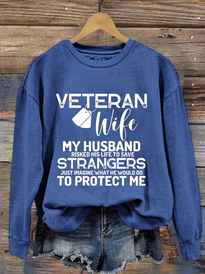 Women's Veteran Wife Just Imagine What He Would Do To Protect Me Print Crew Neck Sweatshirt