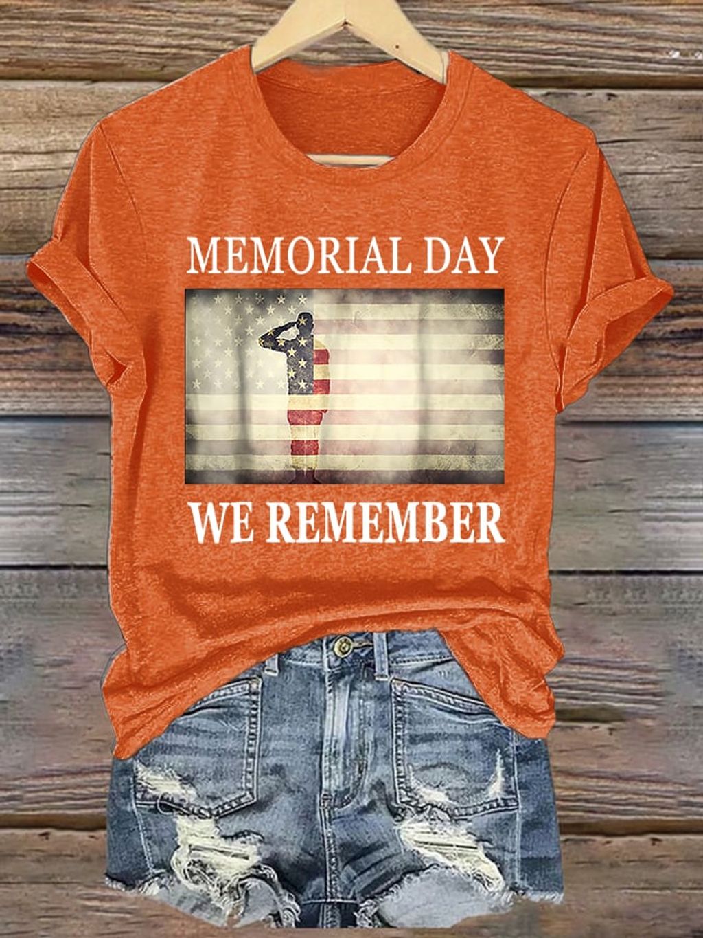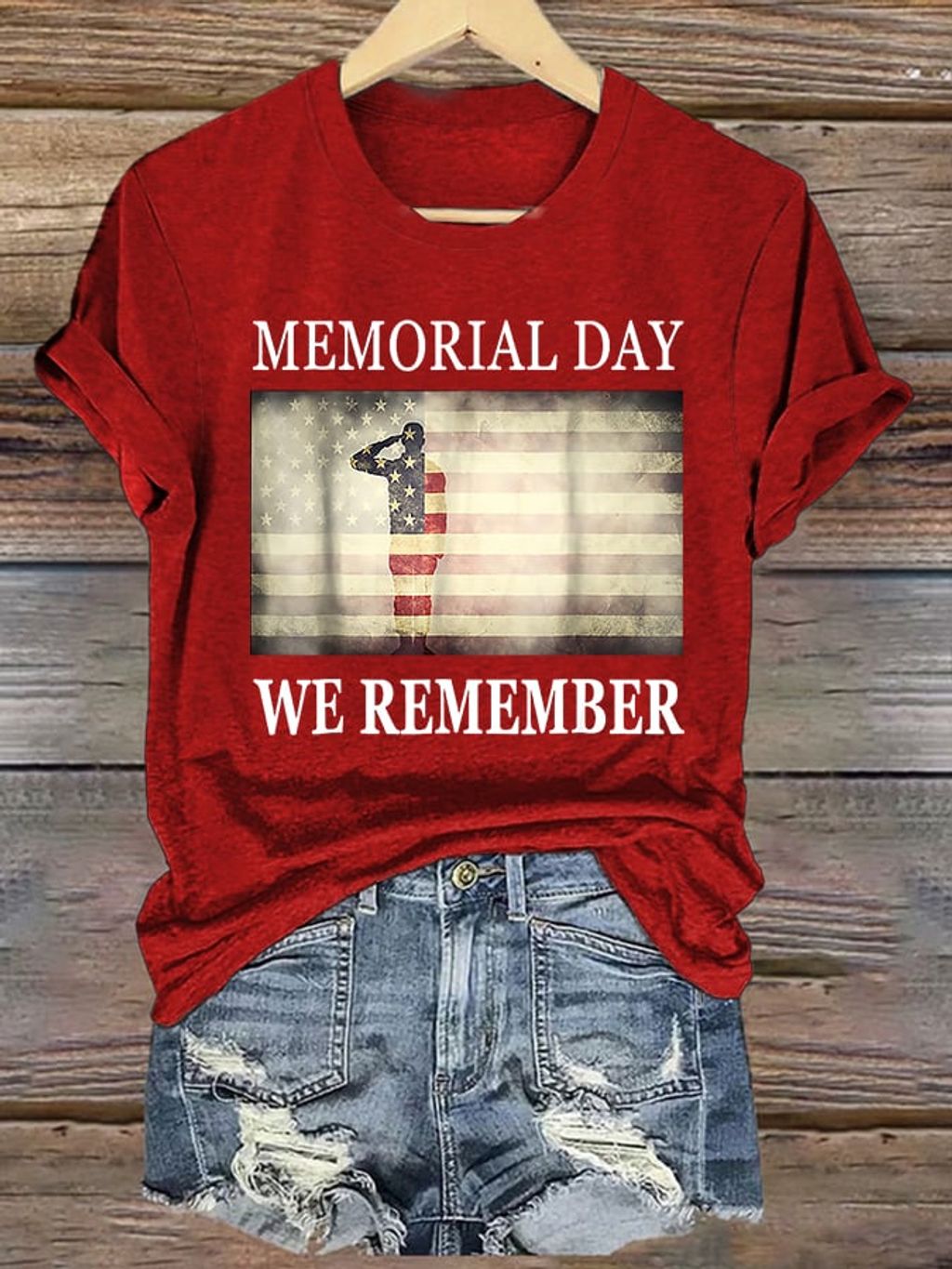 Women's "We Remember Memorial Day" Printed Short Sleeve T-Shirt