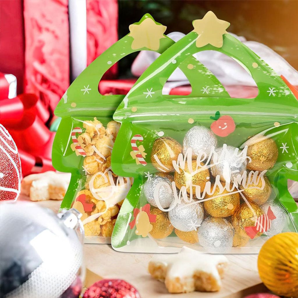 Shaped like a Christmas tree and decorated with holiday icons—these bags make every treat look special and photo-ready.